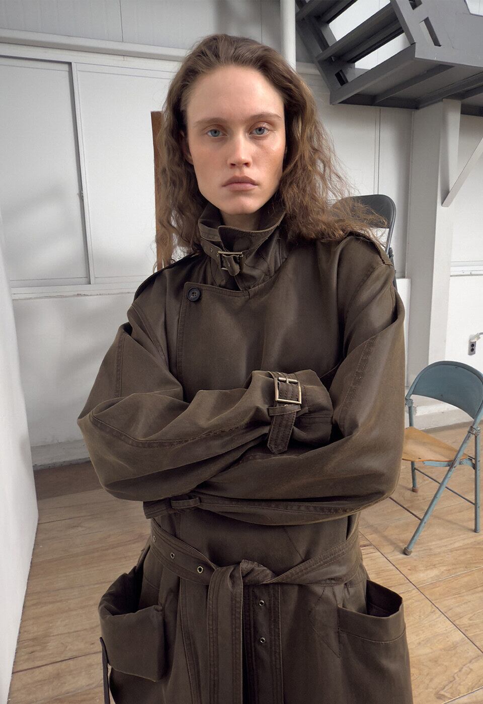 [OPEN YY] MOTORCYCLE MAXI TRENCH COAT, KHAKI