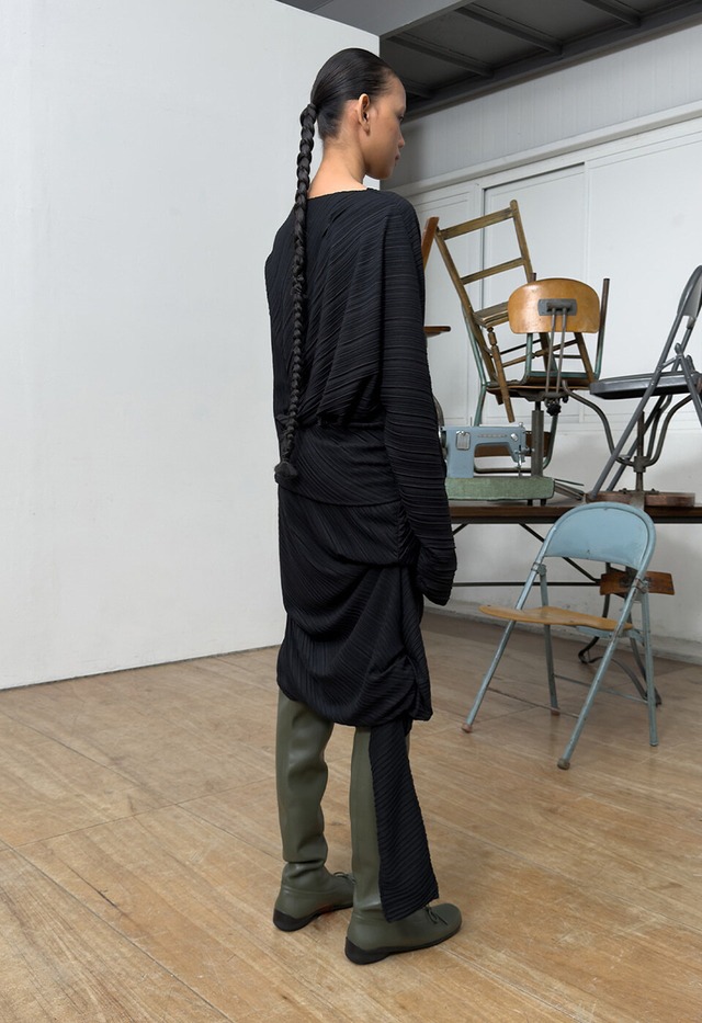 [OPEN YY] PLEATS TOP, BLACK
