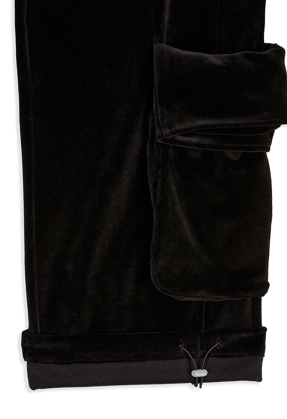 [OPEN YY] ROLLED WAIST VELOUR CARGO PANTS, BLACK
