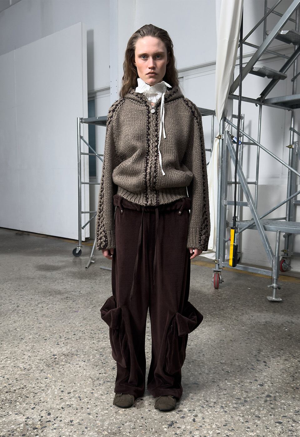 [OPEN YY] ROLLED WAIST VELOUR CARGO PANTS, BROWN