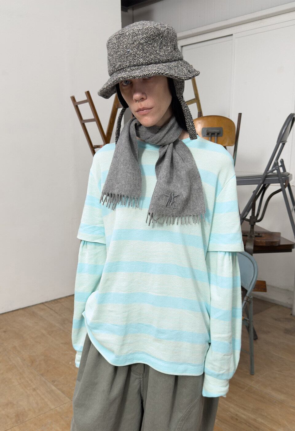 [OPEN YY] LAYERED STRIPE T-SHIRT, MINT