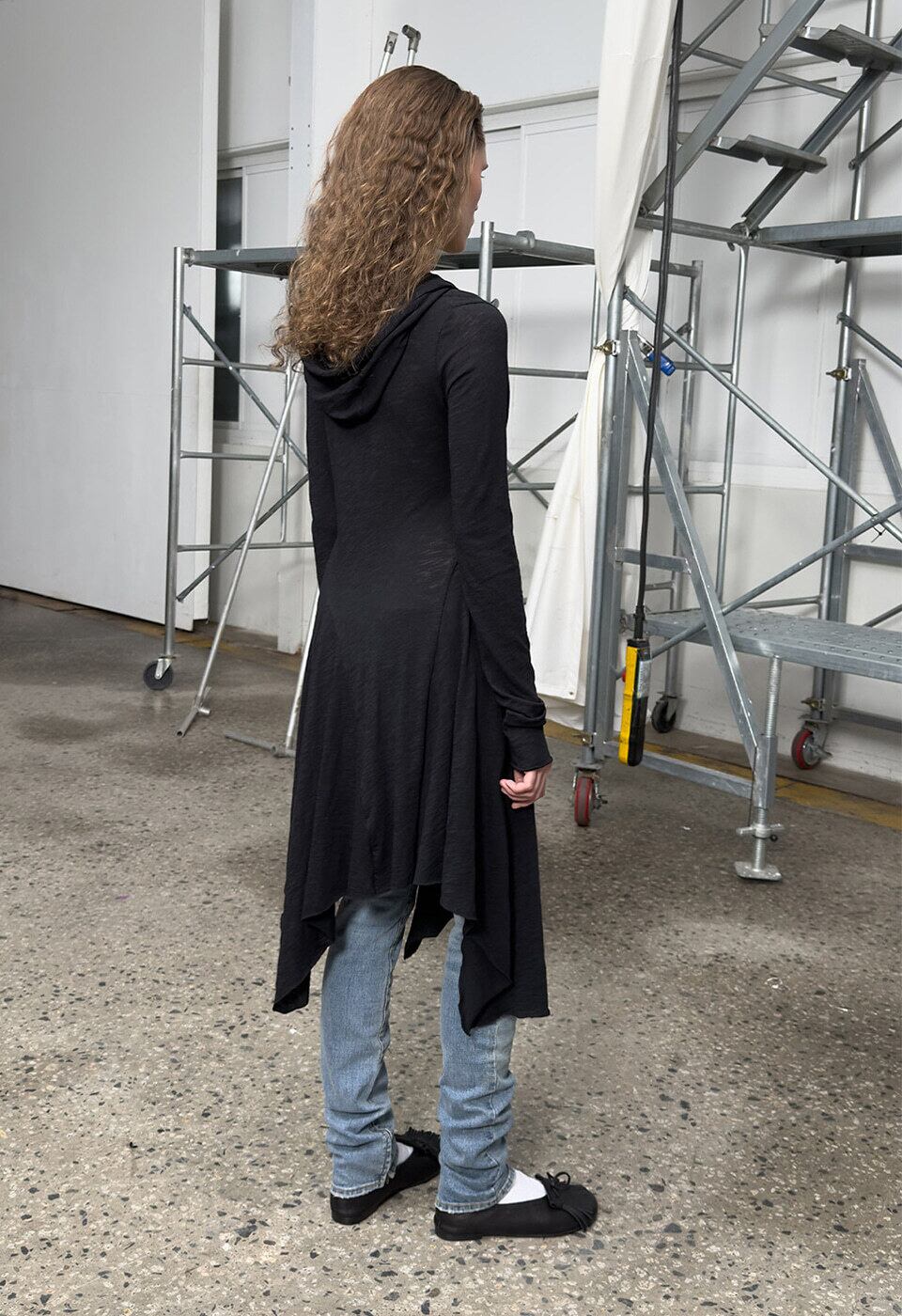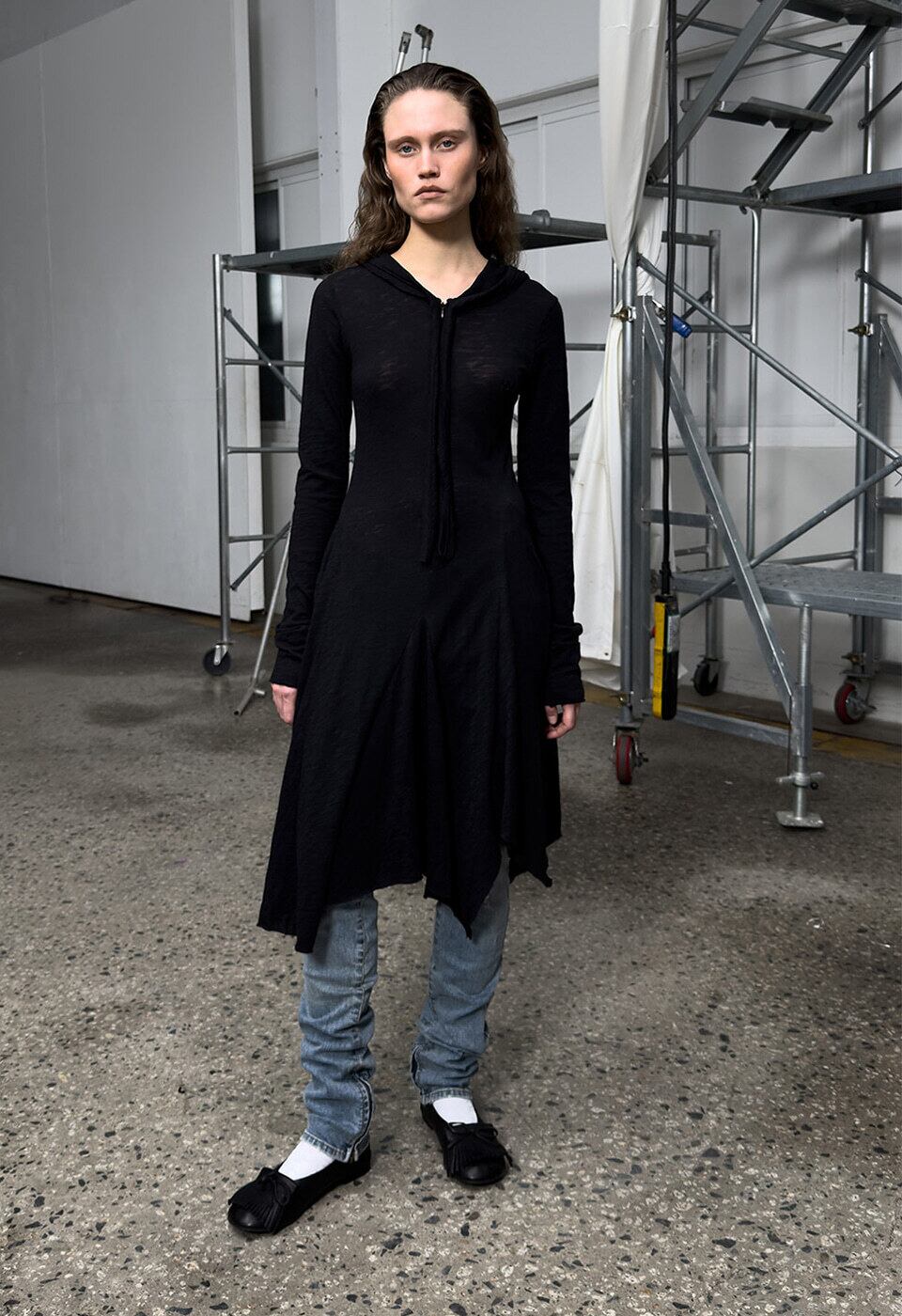 [OPEN YY] HOODED JERSEY DRESS, BLACK