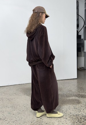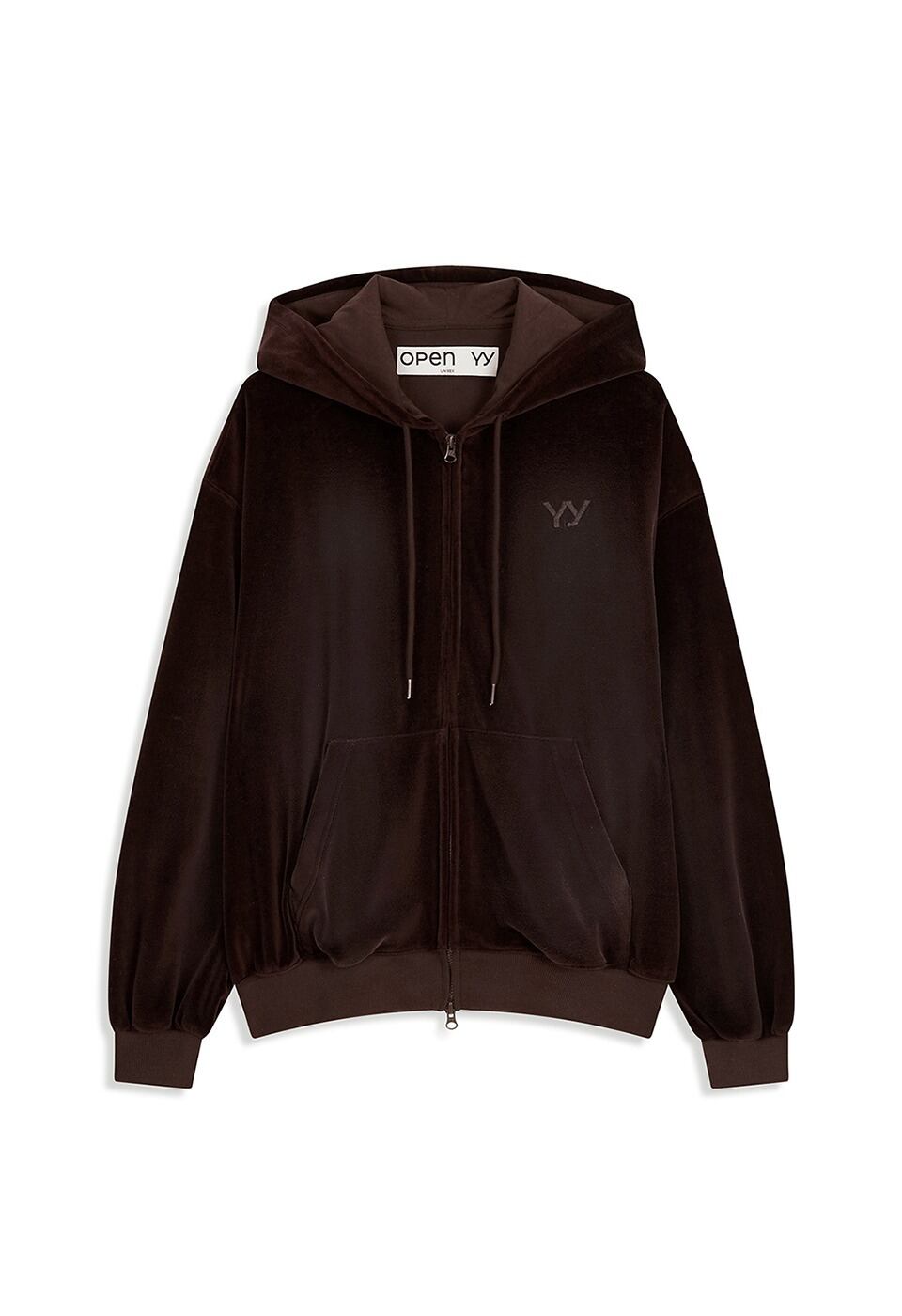 [OPEN YY] VELOUR BOX HOODIE, BROWN