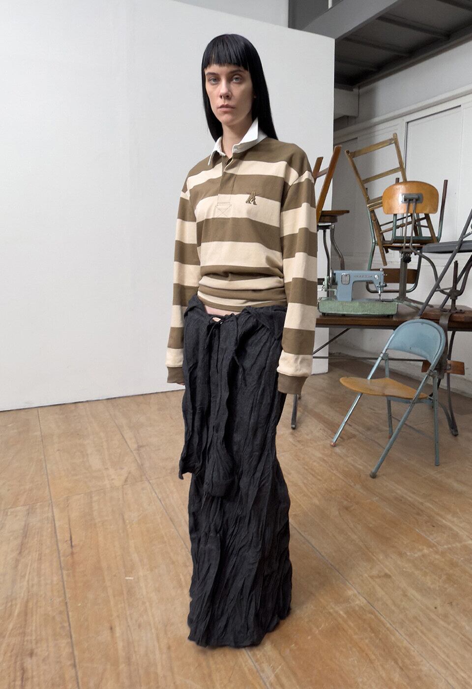 [OPEN YY] CRINKLED SHIRT MAXI SKIRT, CHARCOAL
