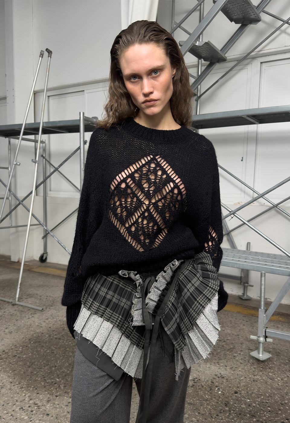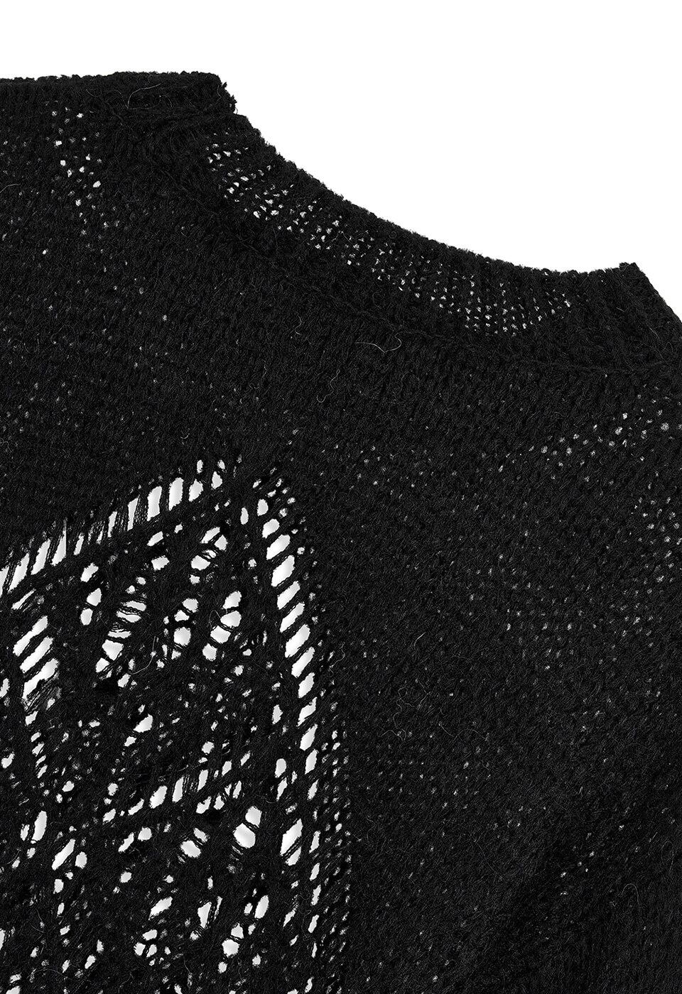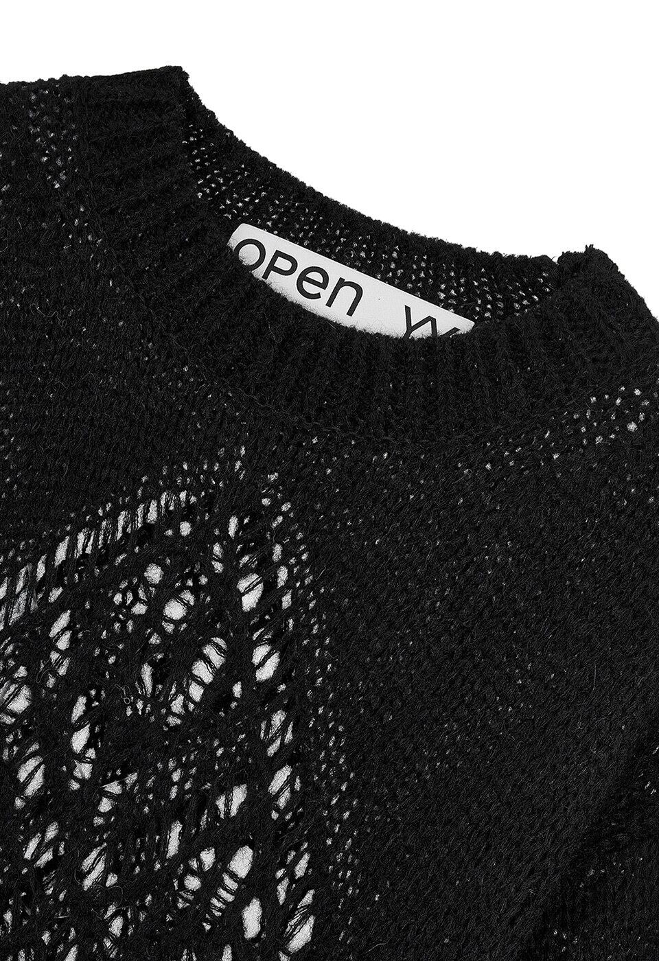 [OPEN YY] ALPACA ARGYLE POINTELLE PULLOVER, BLACK