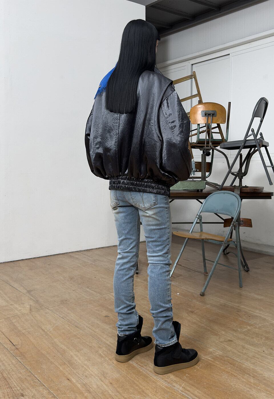 [OPEN YY] SATIN CARGO BOMBER, CHARCOAL 正規品 韓国ブランド 韓国通販 韓国代行 韓国ファッション オープン ワイワイ 日本 店舗