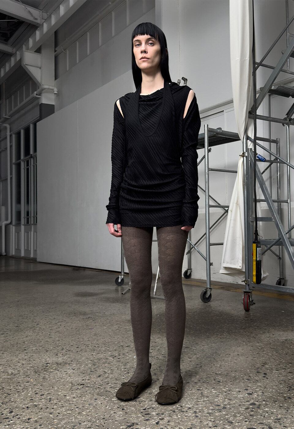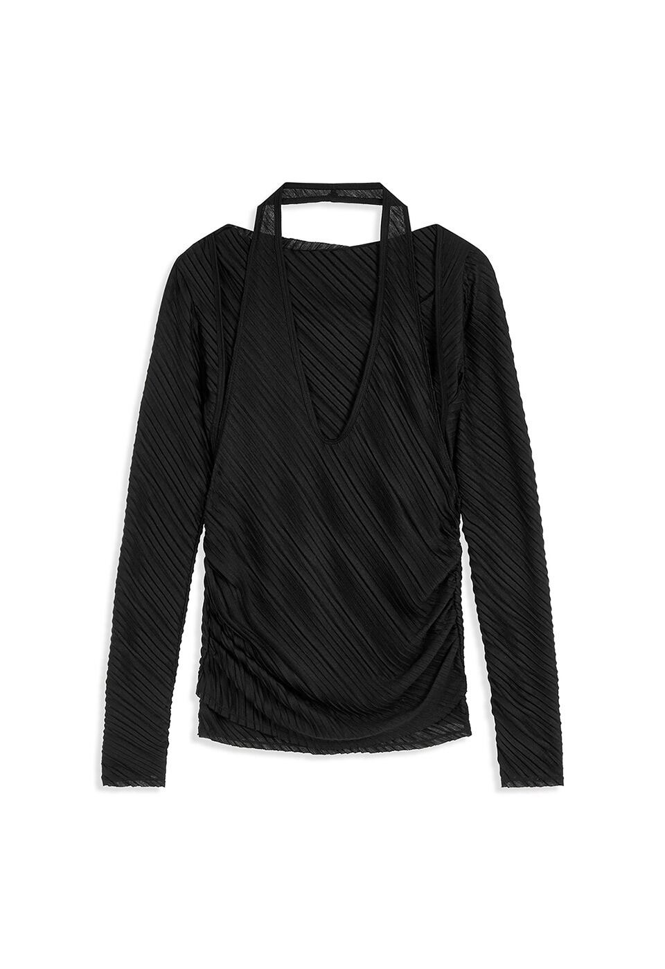 [OPEN YY] PLEATS CONVERTIBLE BOLERO TOP, BLACK