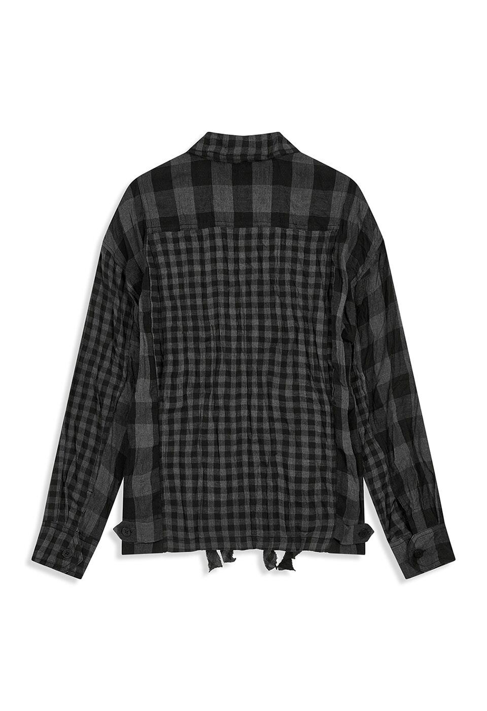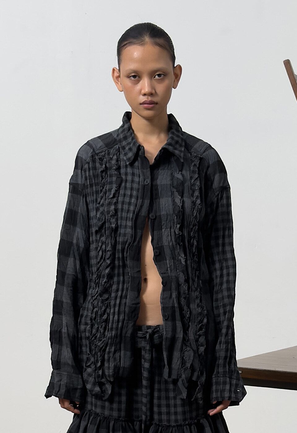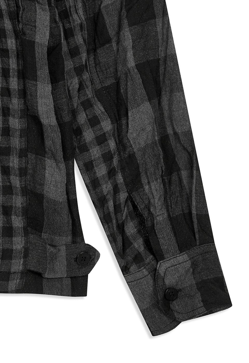 [OPEN YY] CRINKLED RUFFLE SHIRT, BLACK