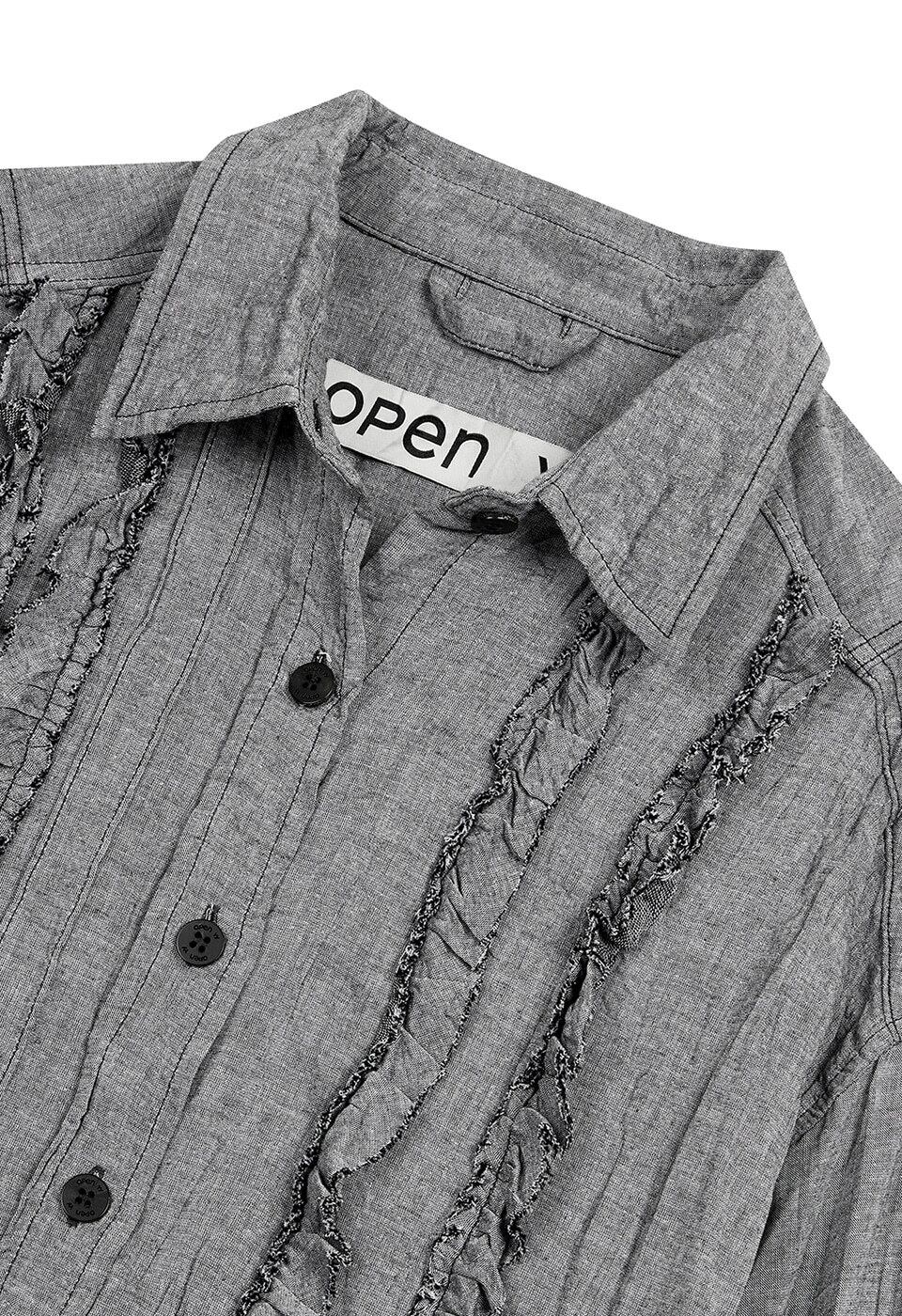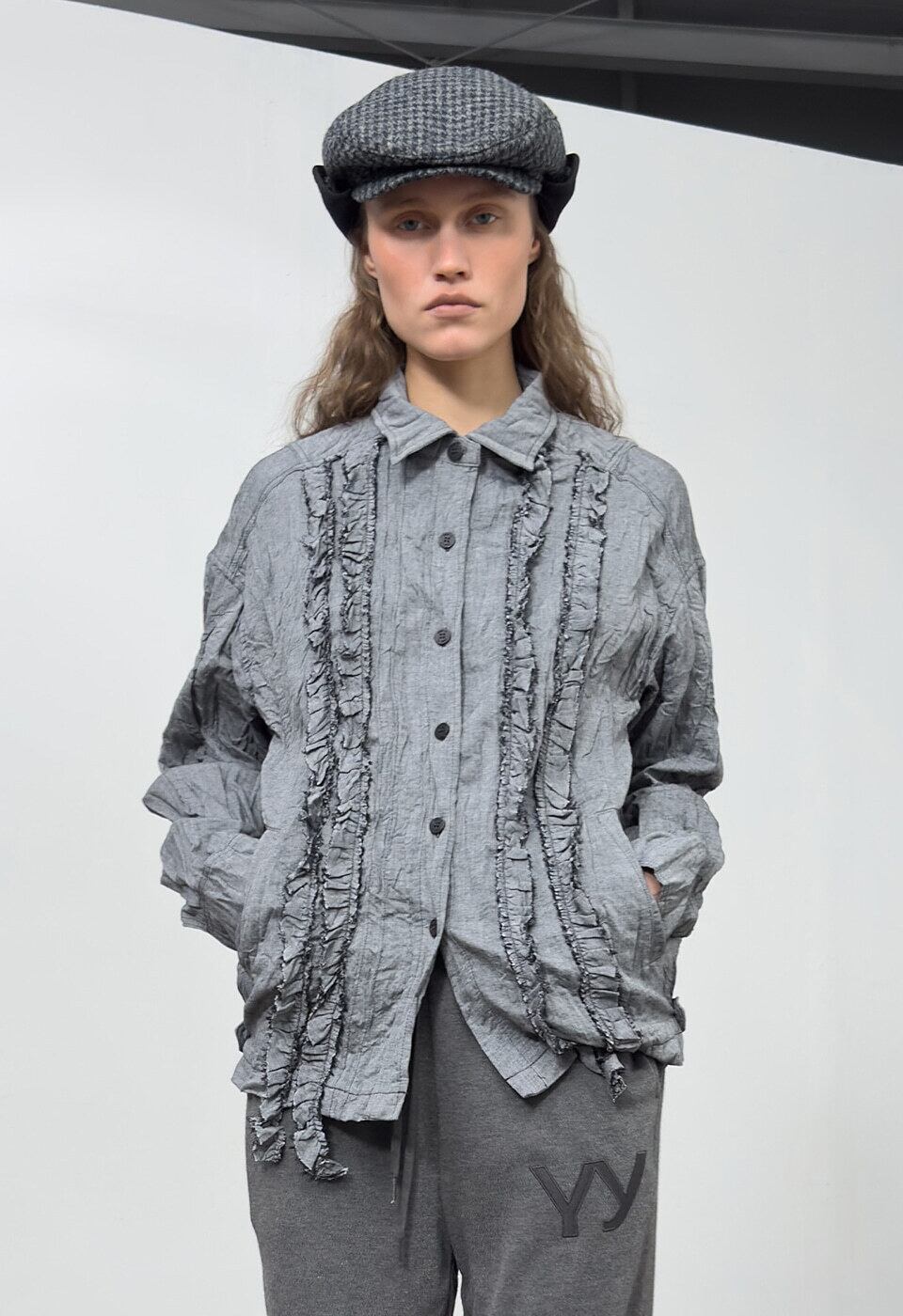 [OPEN YY] CRINKLED RUFFLE SHIRT, GRAY