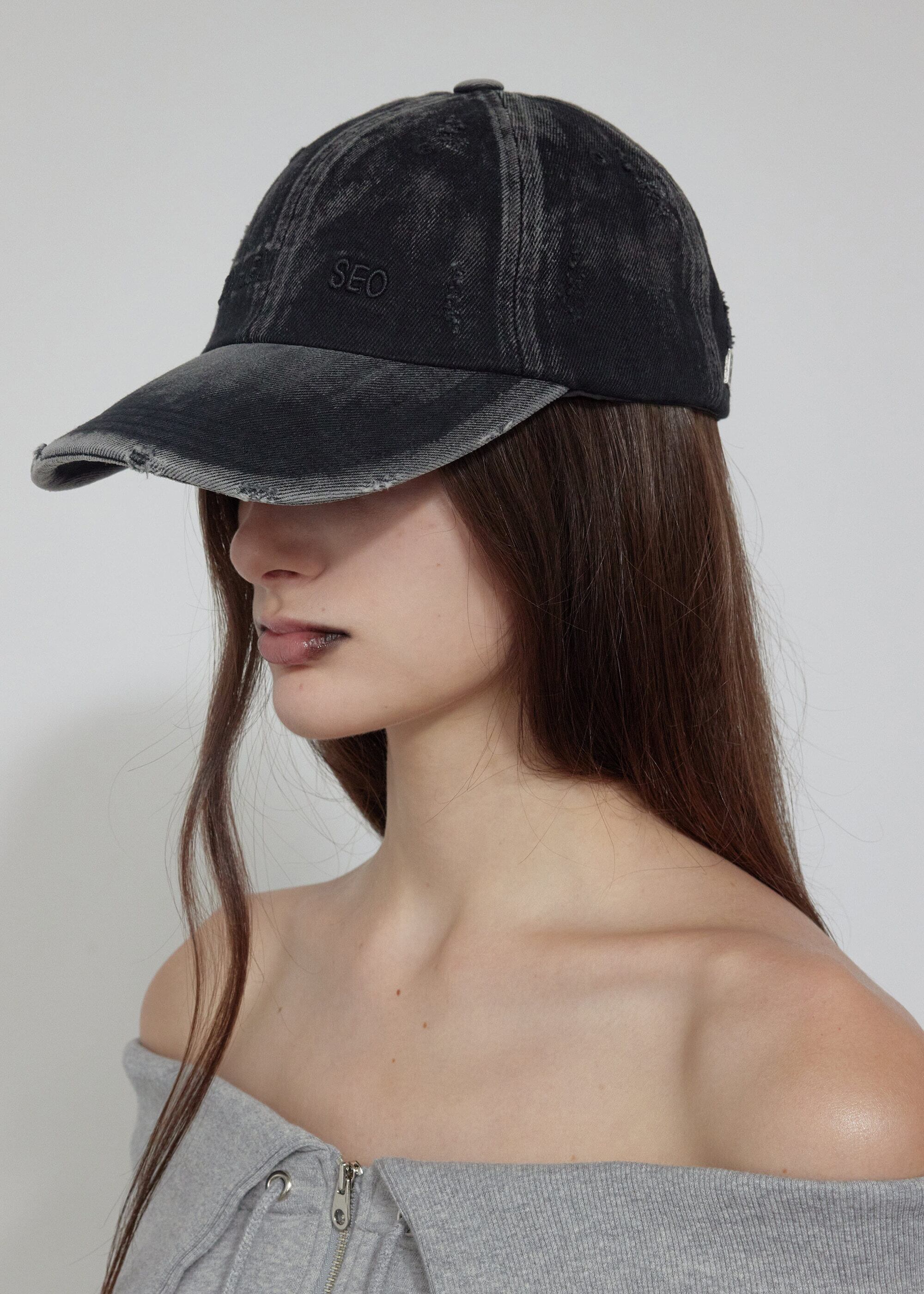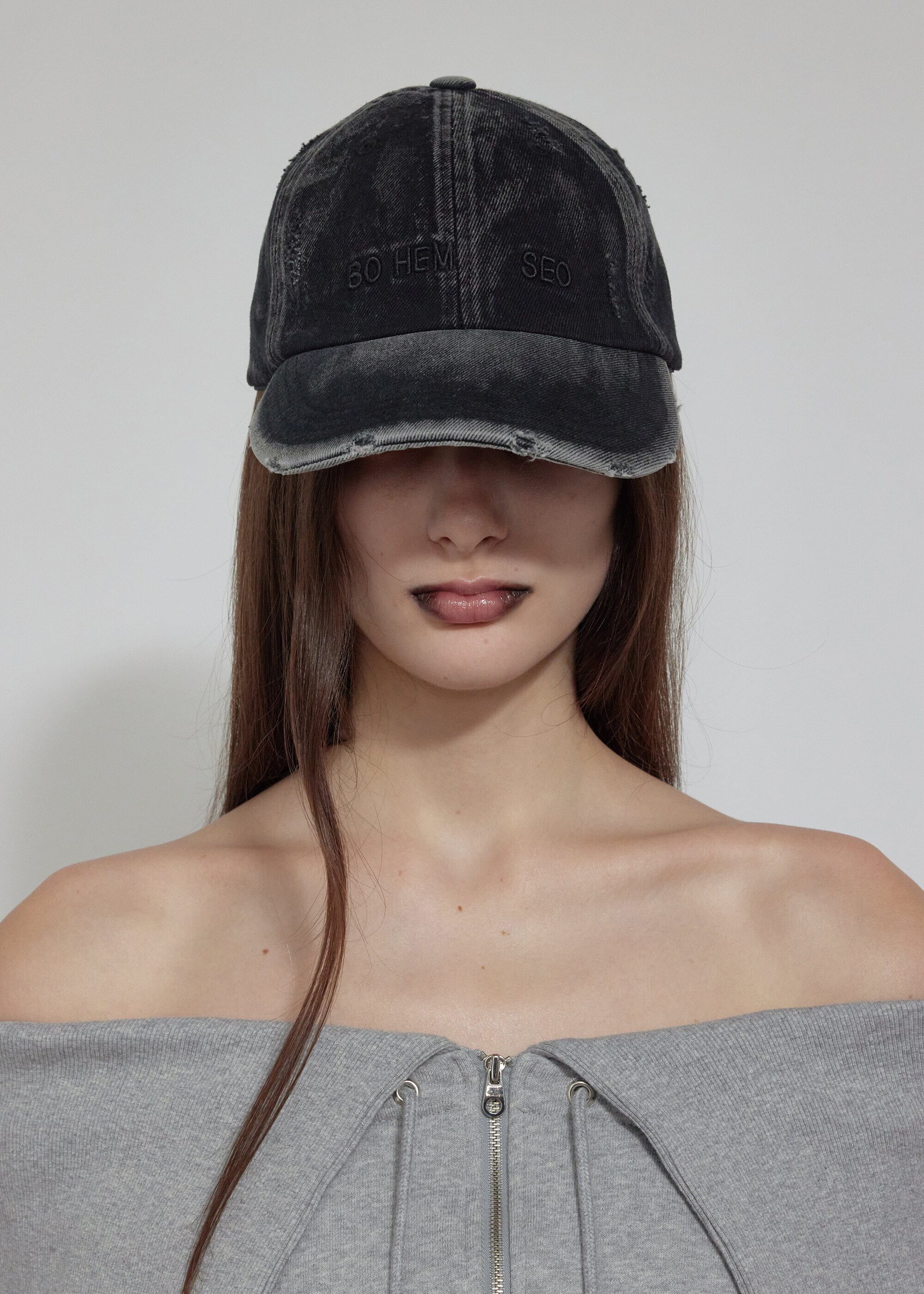 [BOHEMIAN SEOUL] DISTRESSED DENIM BALL CAP, WASHED BLACK
