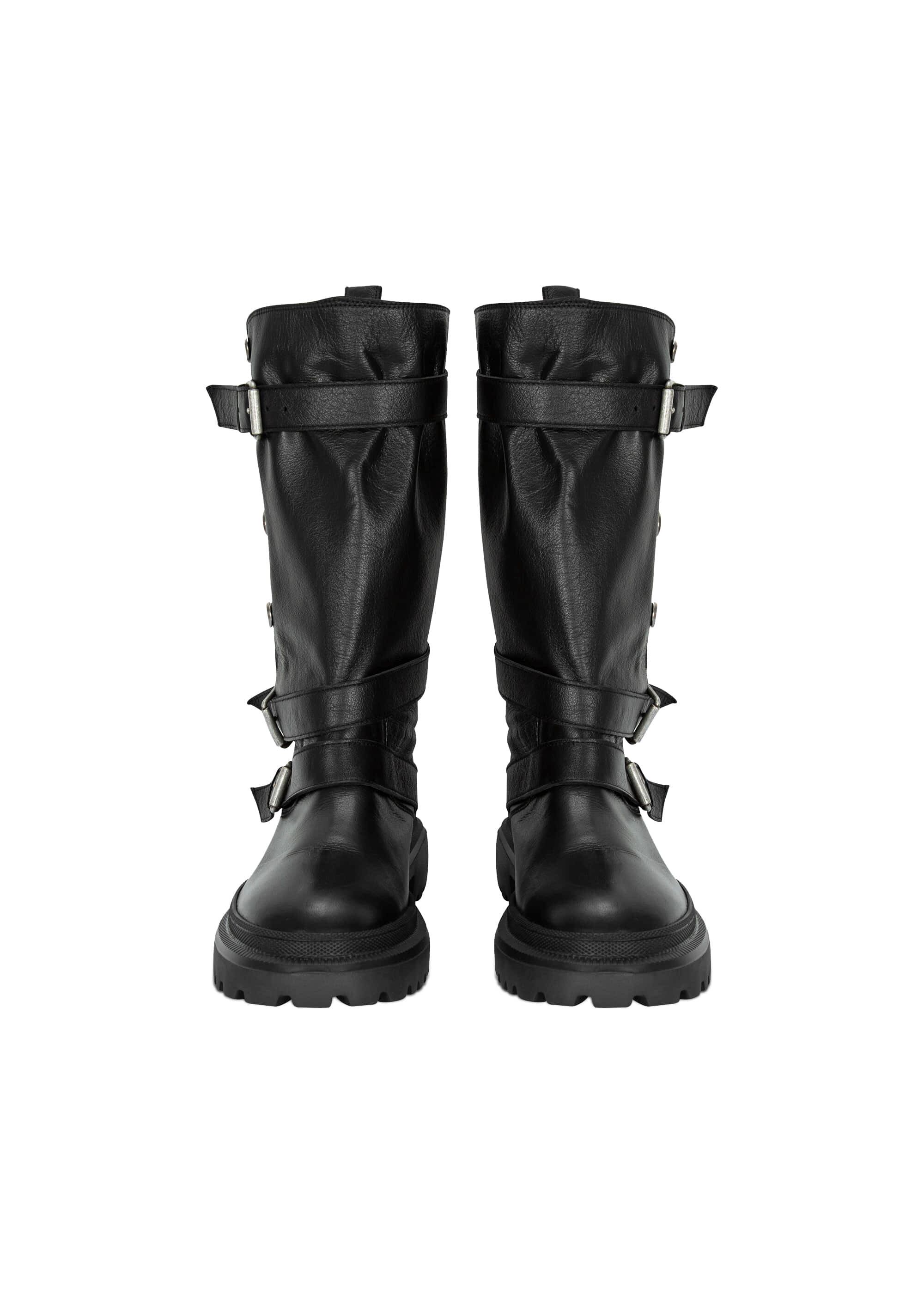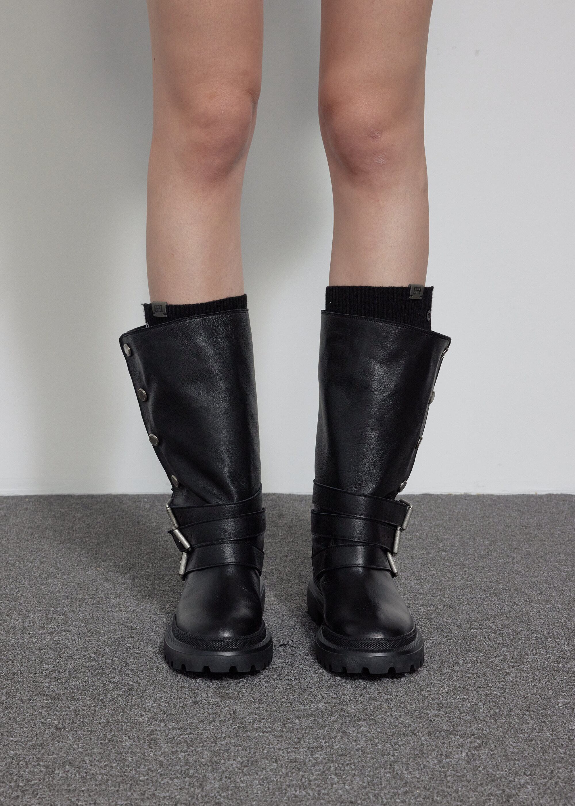 [BOHEMIAN SEOUL] SNAP OPEN MIDDLE BOOTS, BLACK