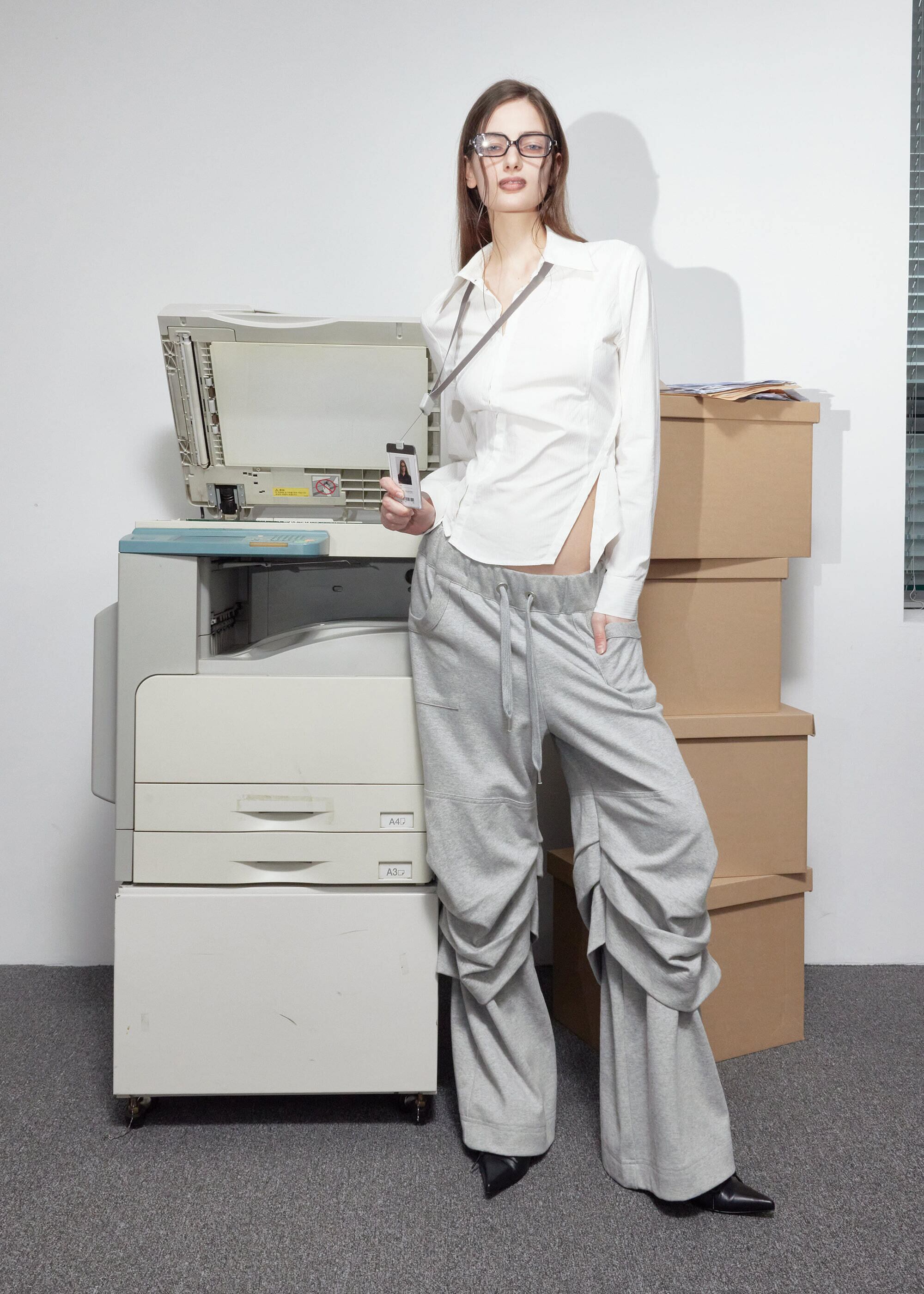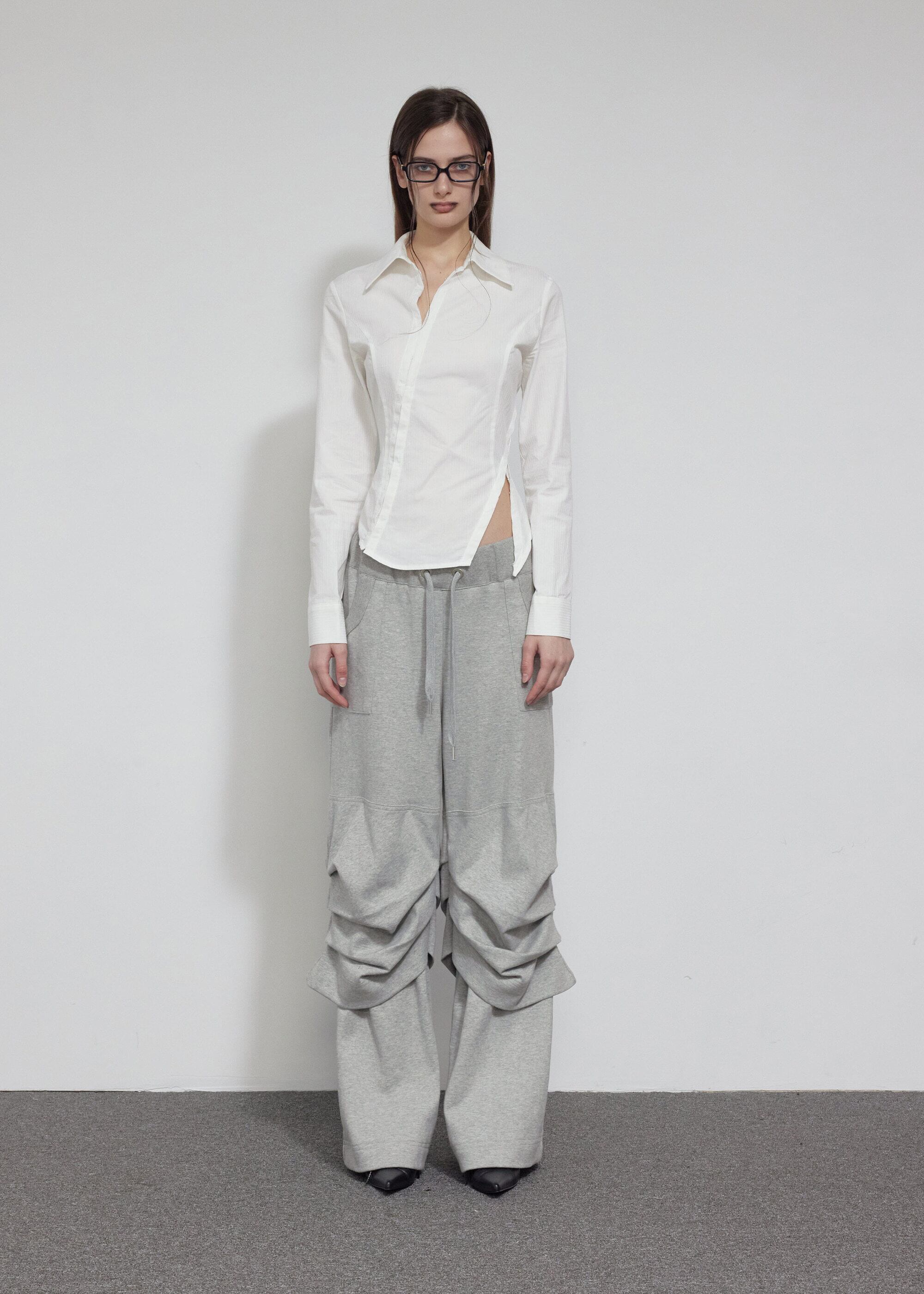 [BOHEMIAN SEOUL] DIAGONAL SWEAT PANTS, MELANGE GRAY