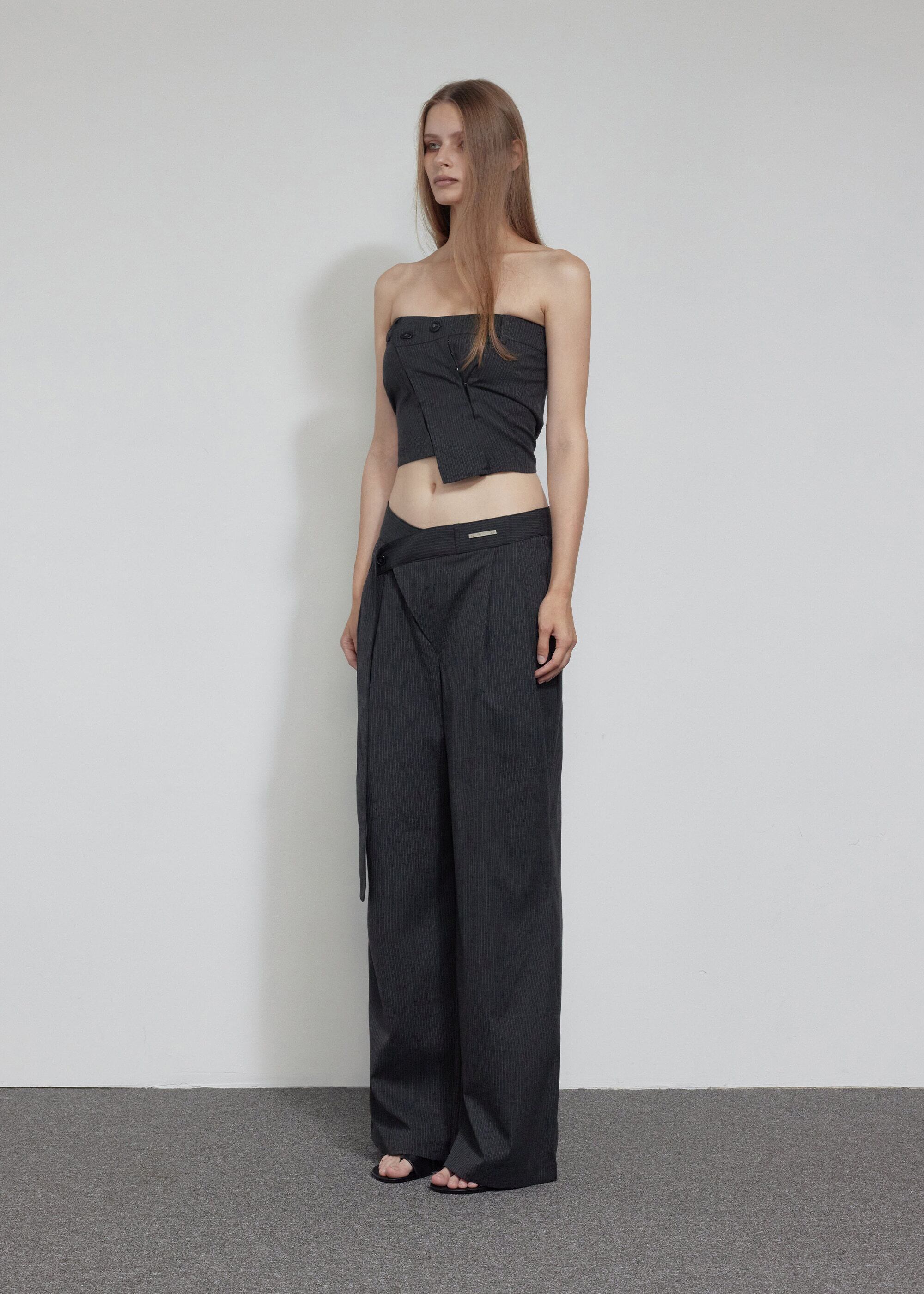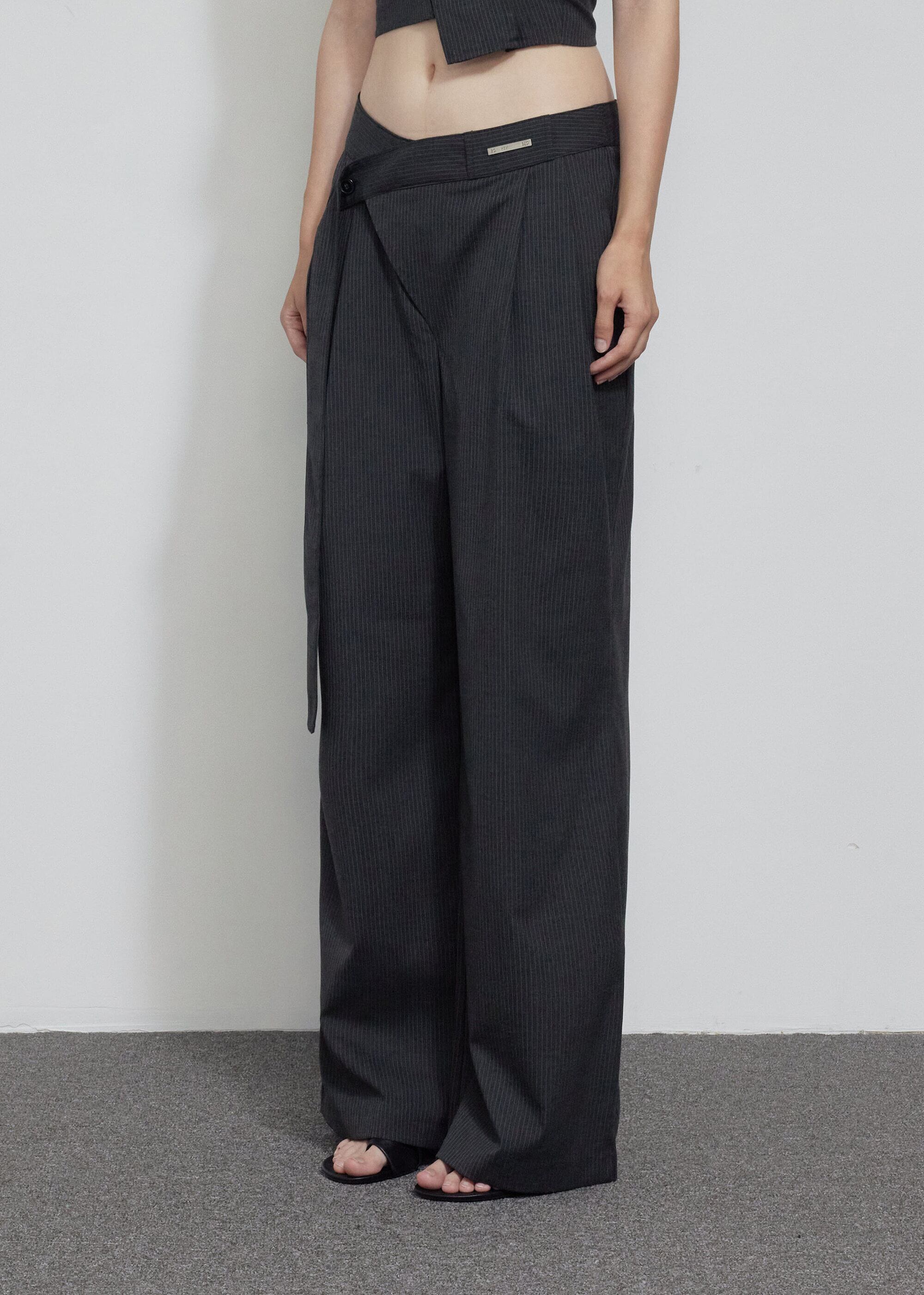 [BOHEMIAN SEOUL] OVER TIE WIDE PANTS, STRIPE CHARCOAL