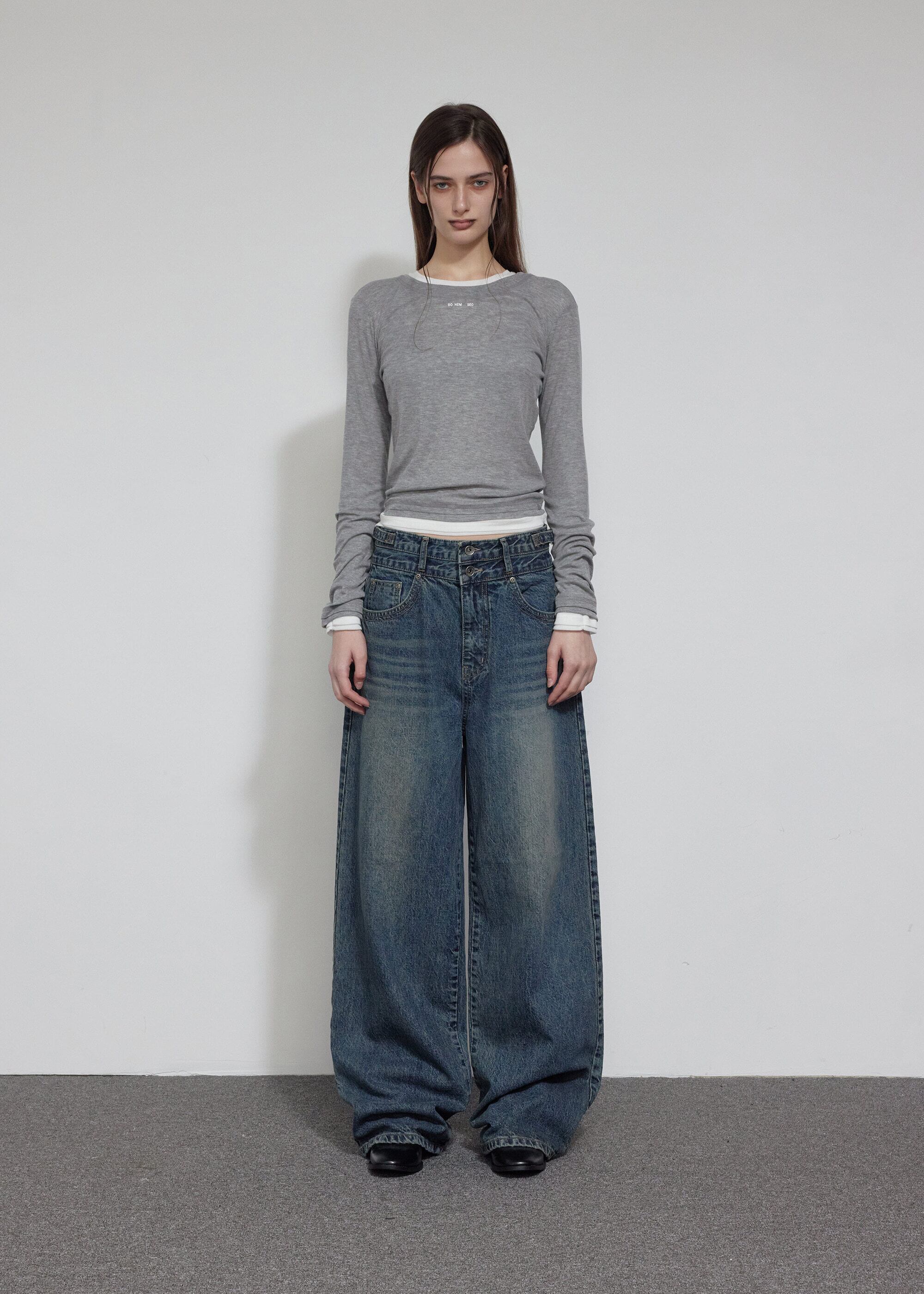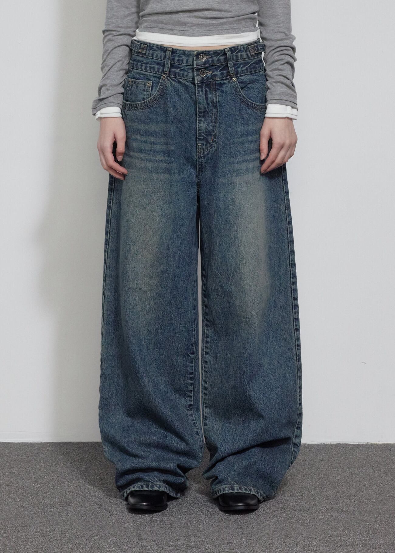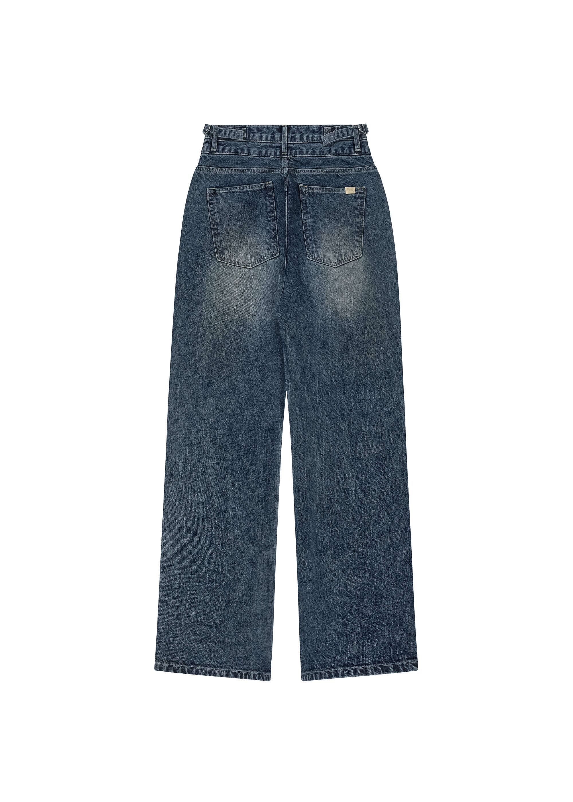 [BOHEMIAN SEOUL] DOUBLE-WAISTED WIDE JEAN, BLUE