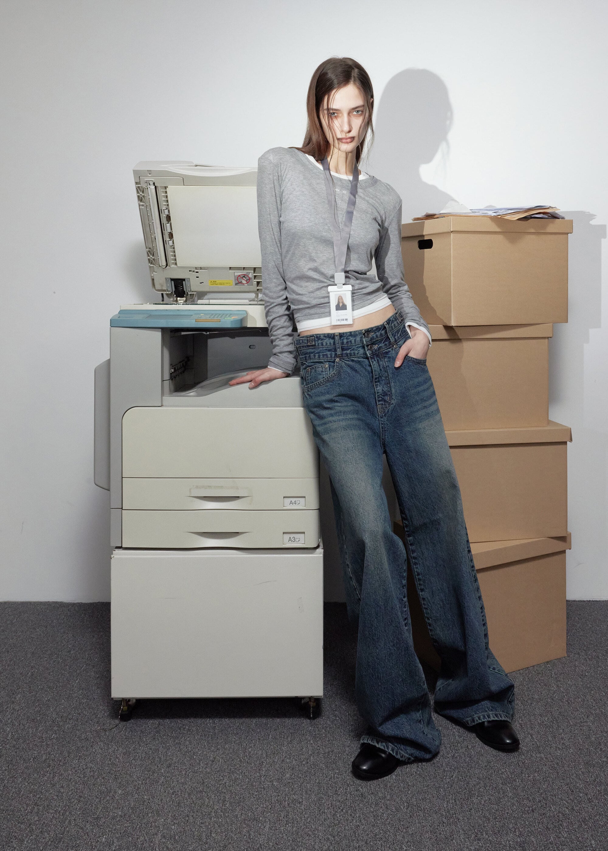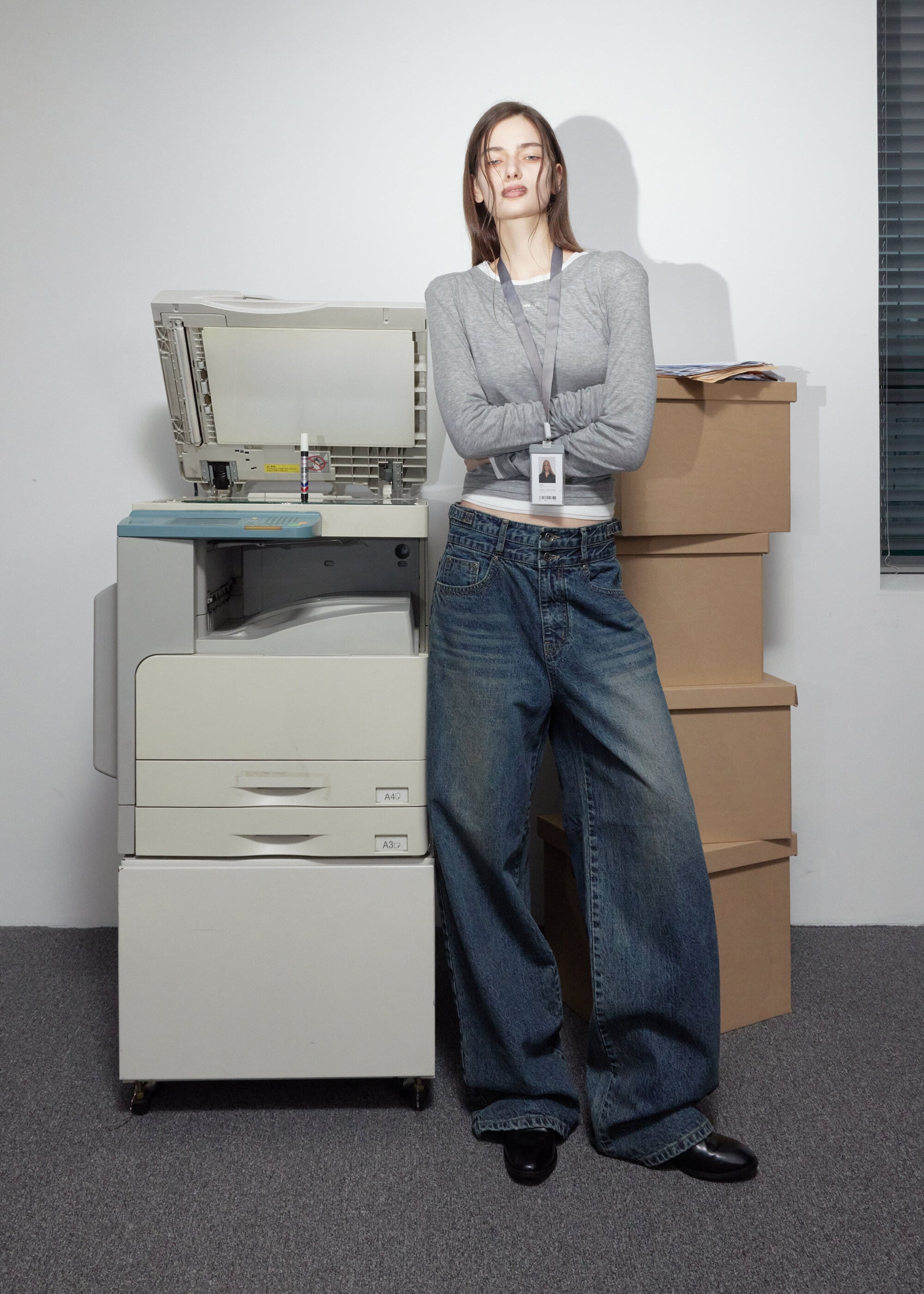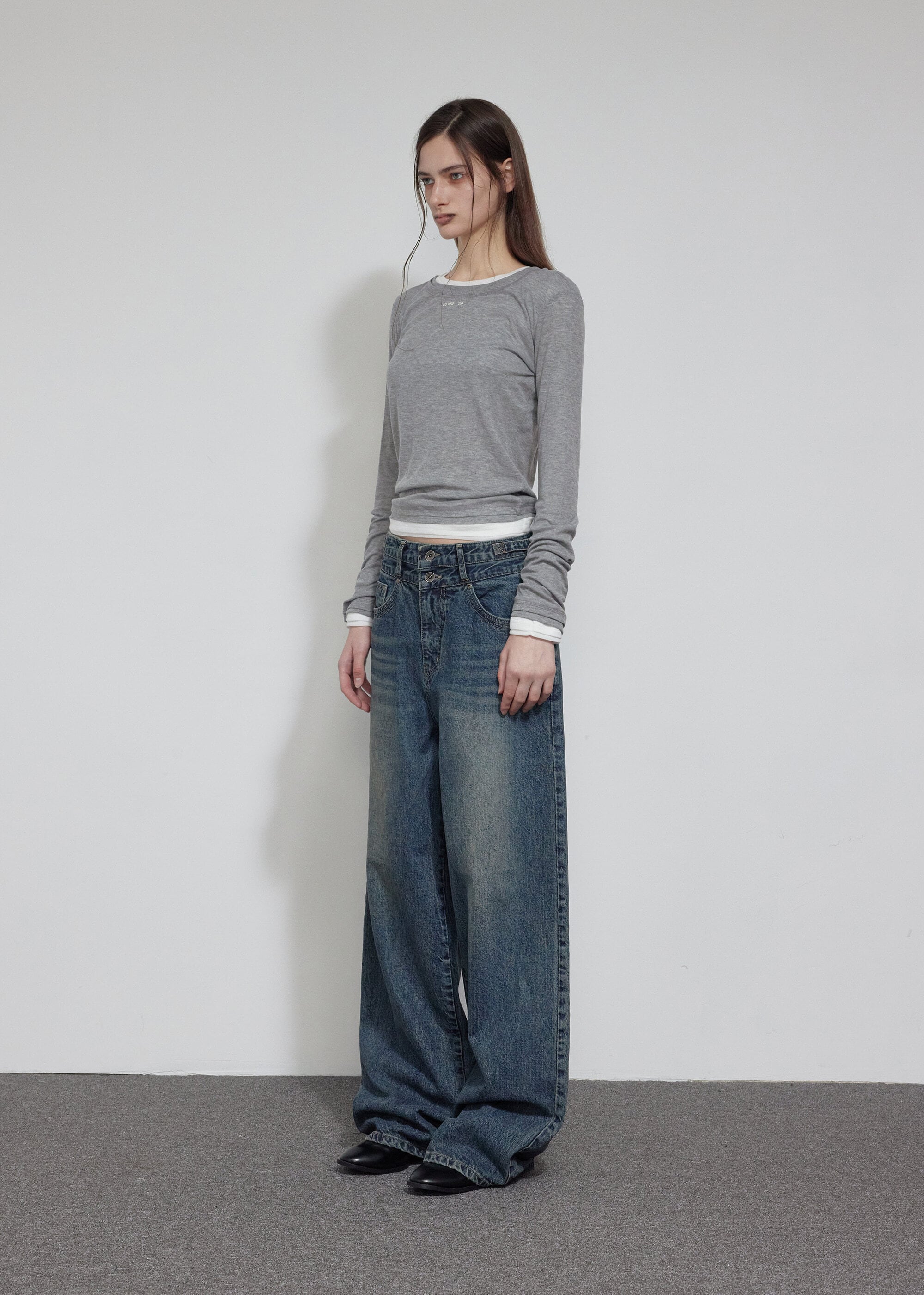 [BOHEMIAN SEOUL] DOUBLE-WAISTED WIDE JEAN, BLUE
