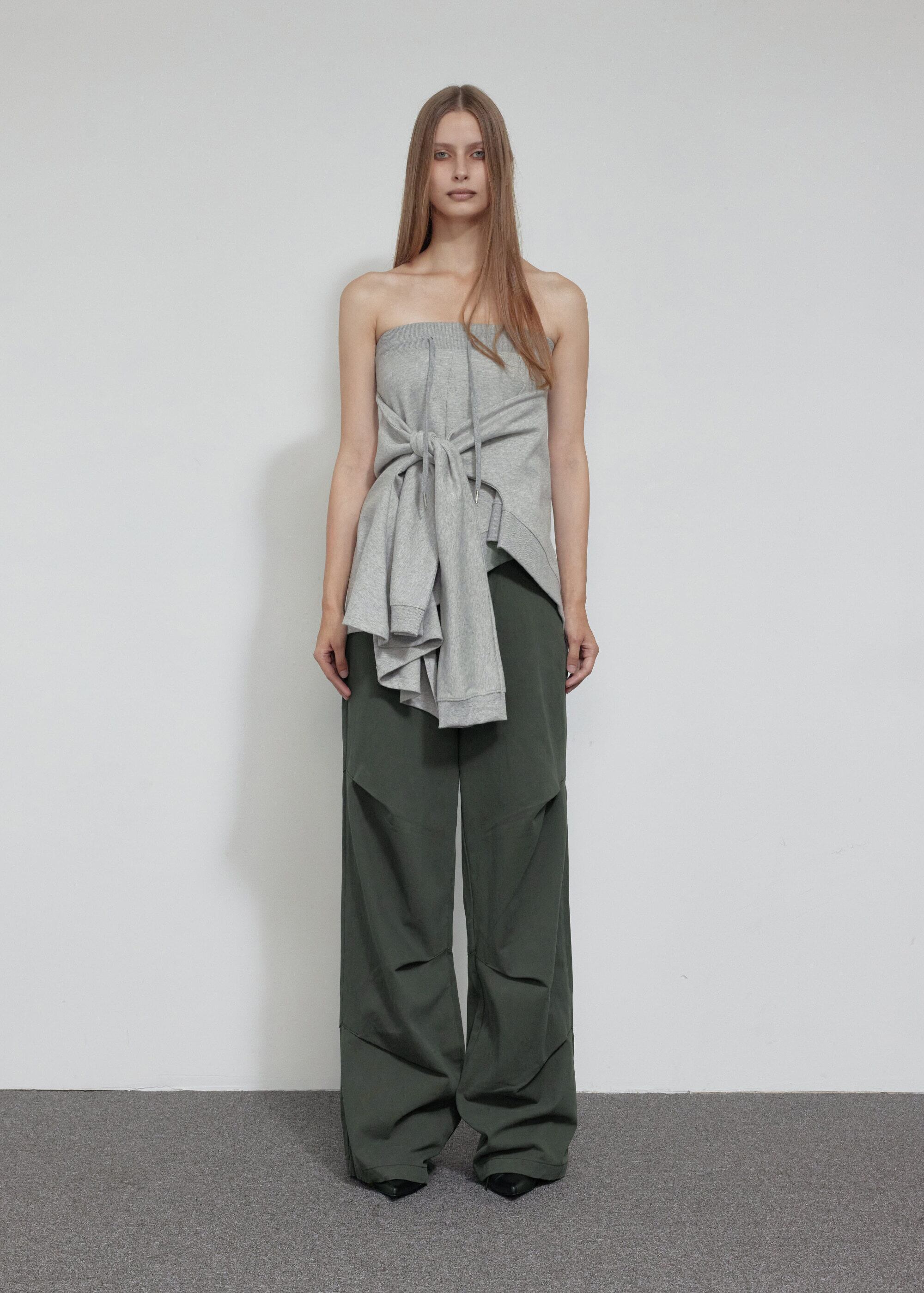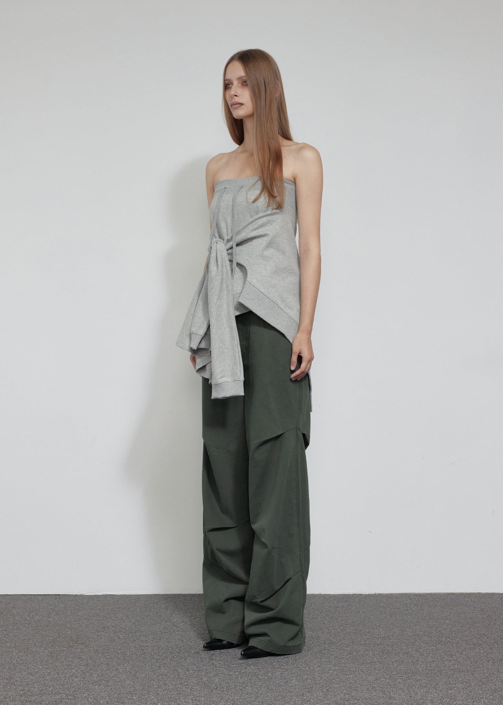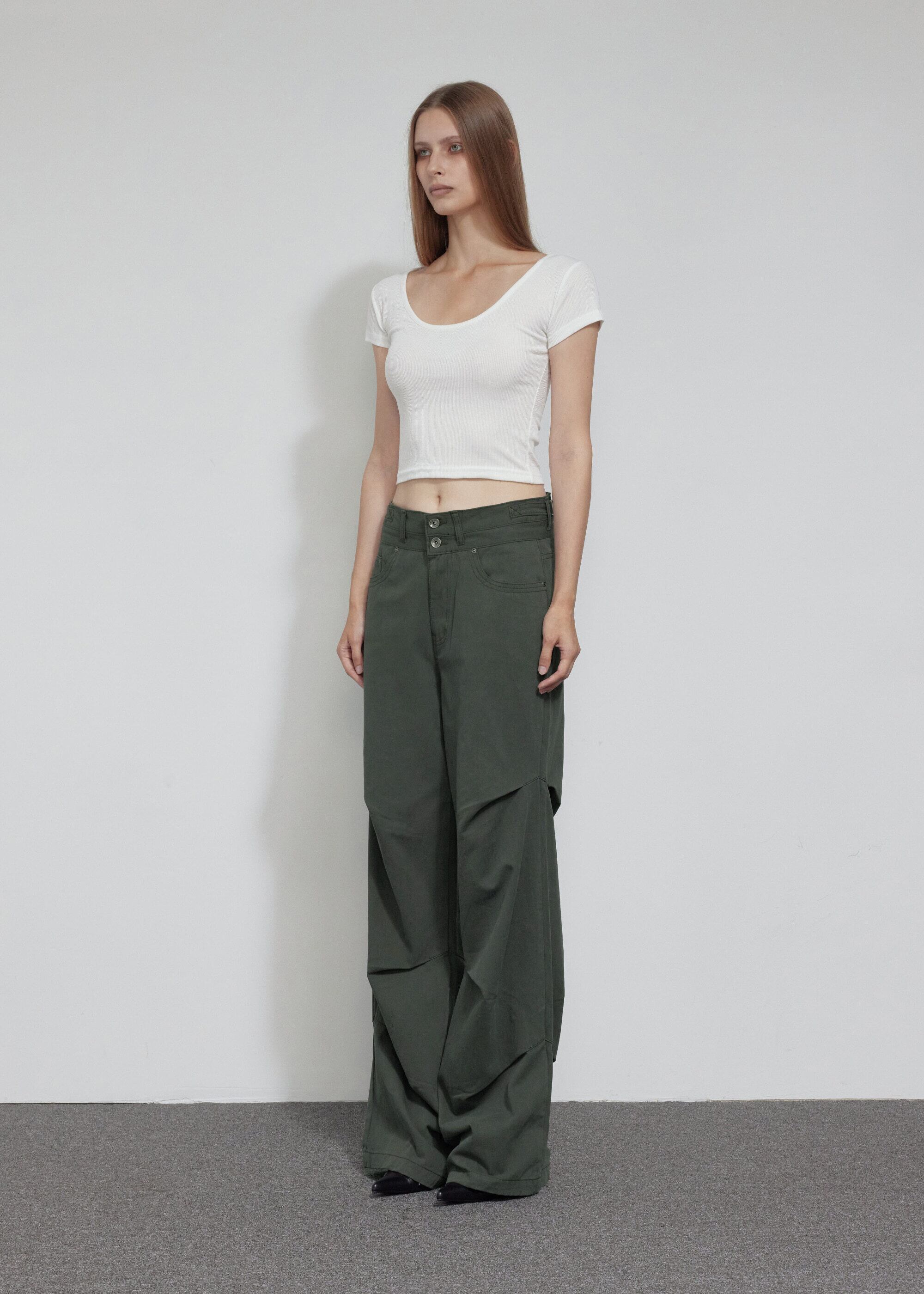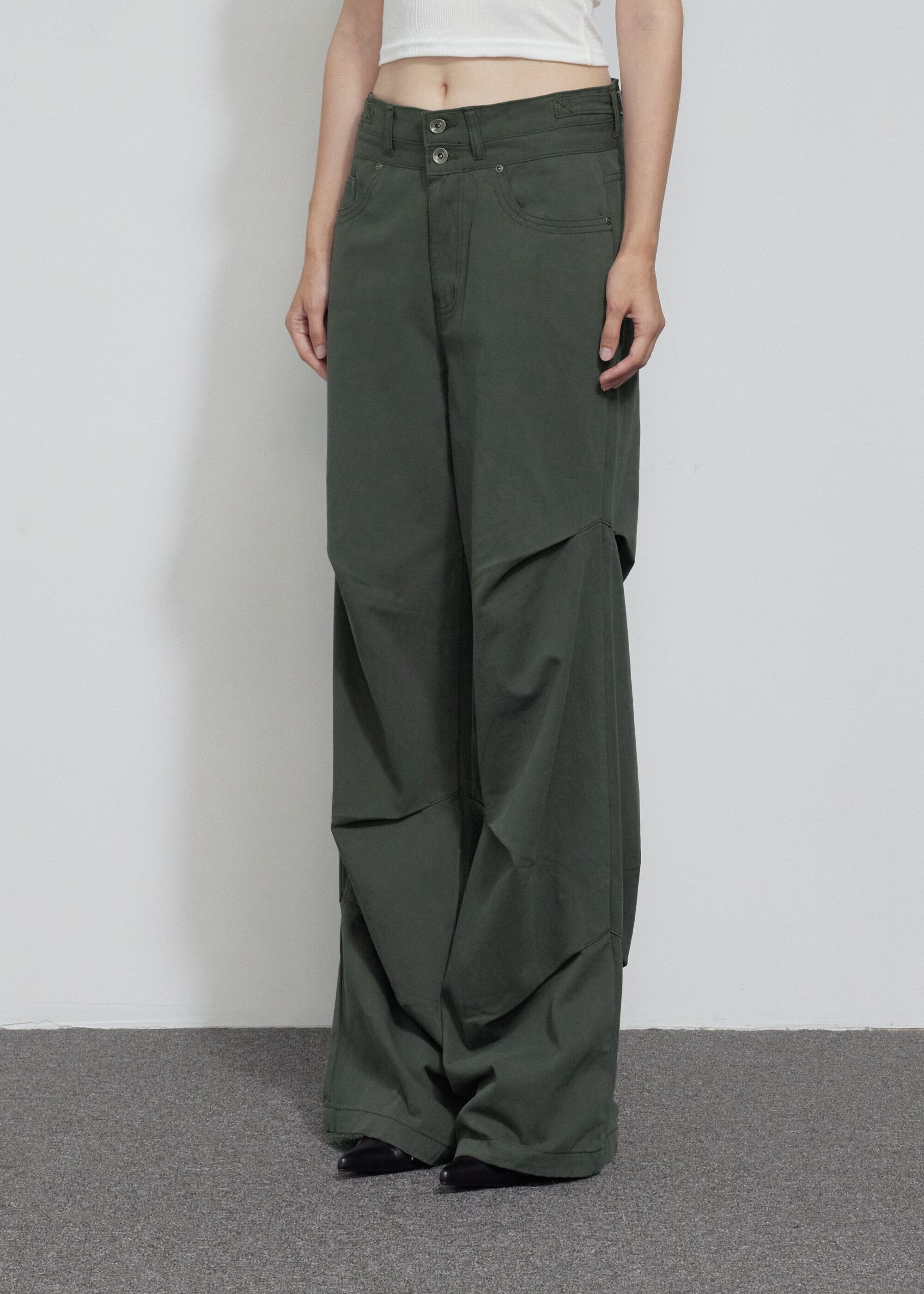 [BOHEMIAN SEOUL] DOUBLE-WAISTED COTTON PANTS, KHAKI