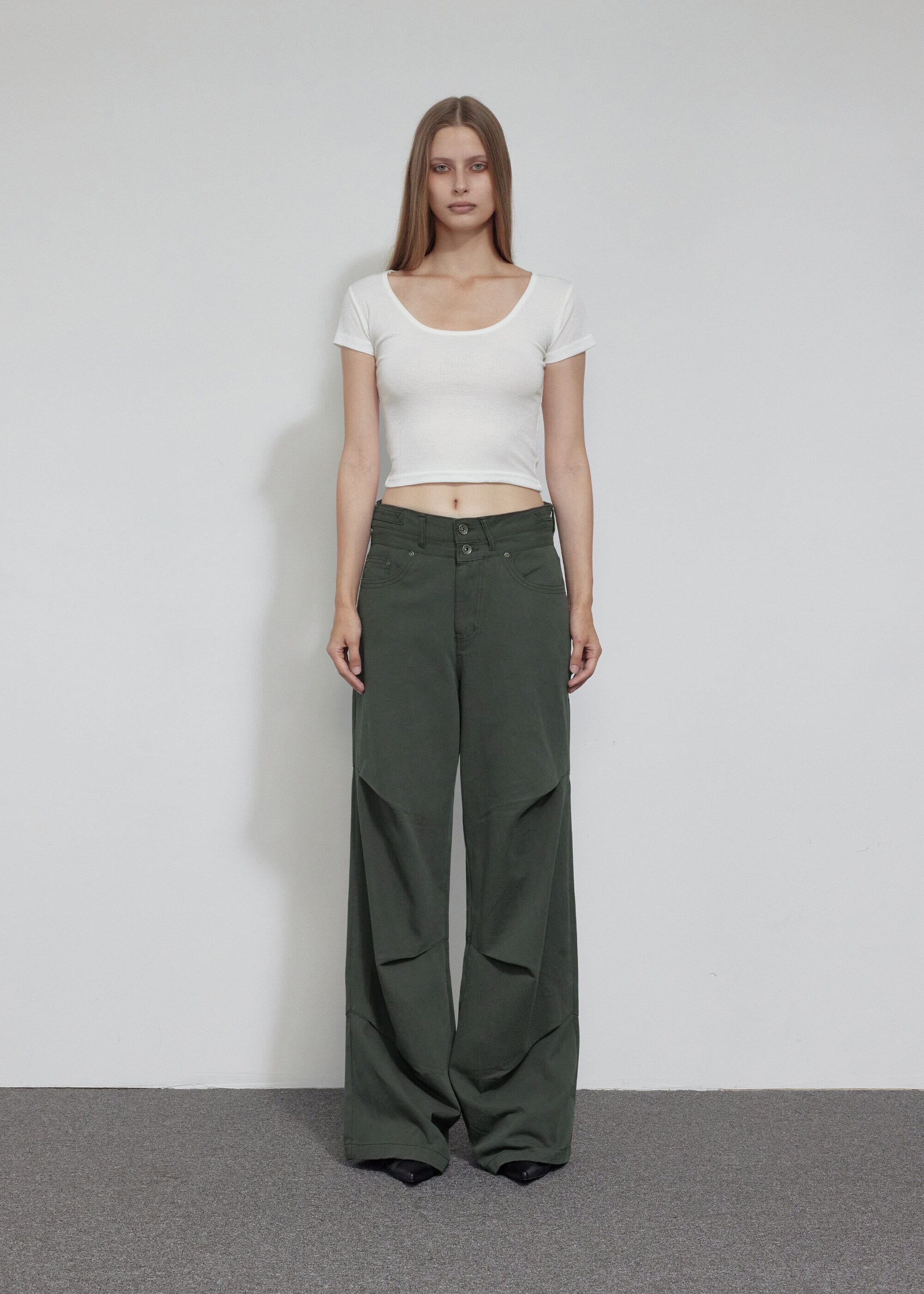 [BOHEMIAN SEOUL] DOUBLE-WAISTED COTTON PANTS, KHAKI 正規品 韓国ブランド 韓国通販 韓国代行 韓国ファッション bohemseo ボヘミアンソウル ボヘムソ 日本 店舗