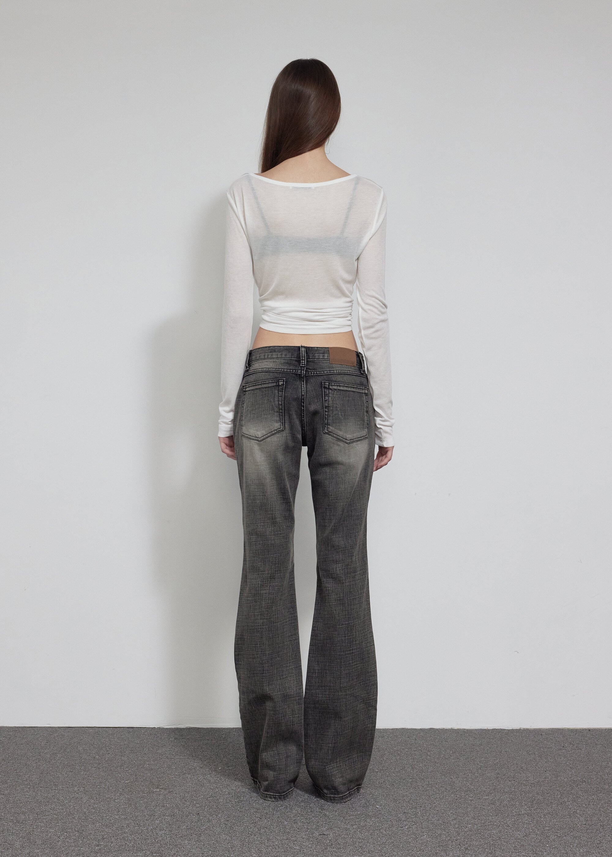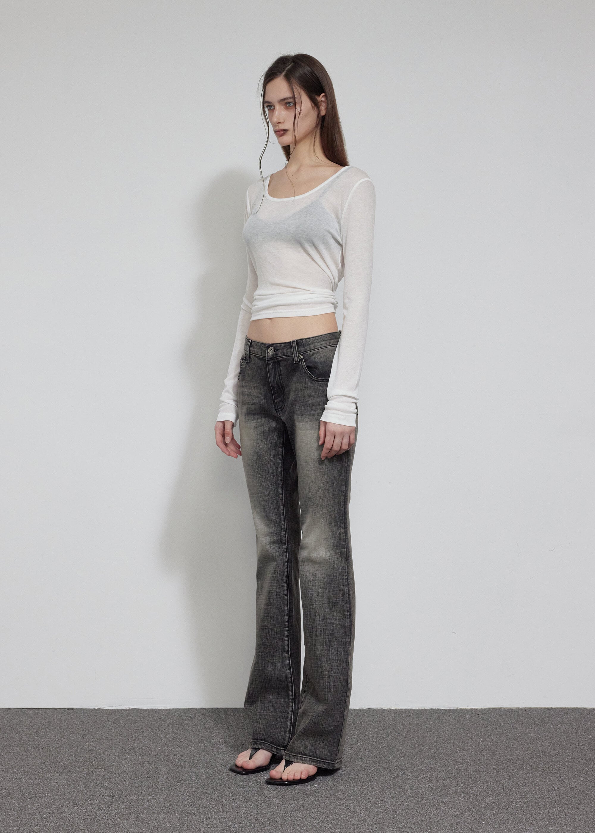 [BOHEMIAN SEOUL] LOW RISE BOOTS CUT PANTS, GRAY
