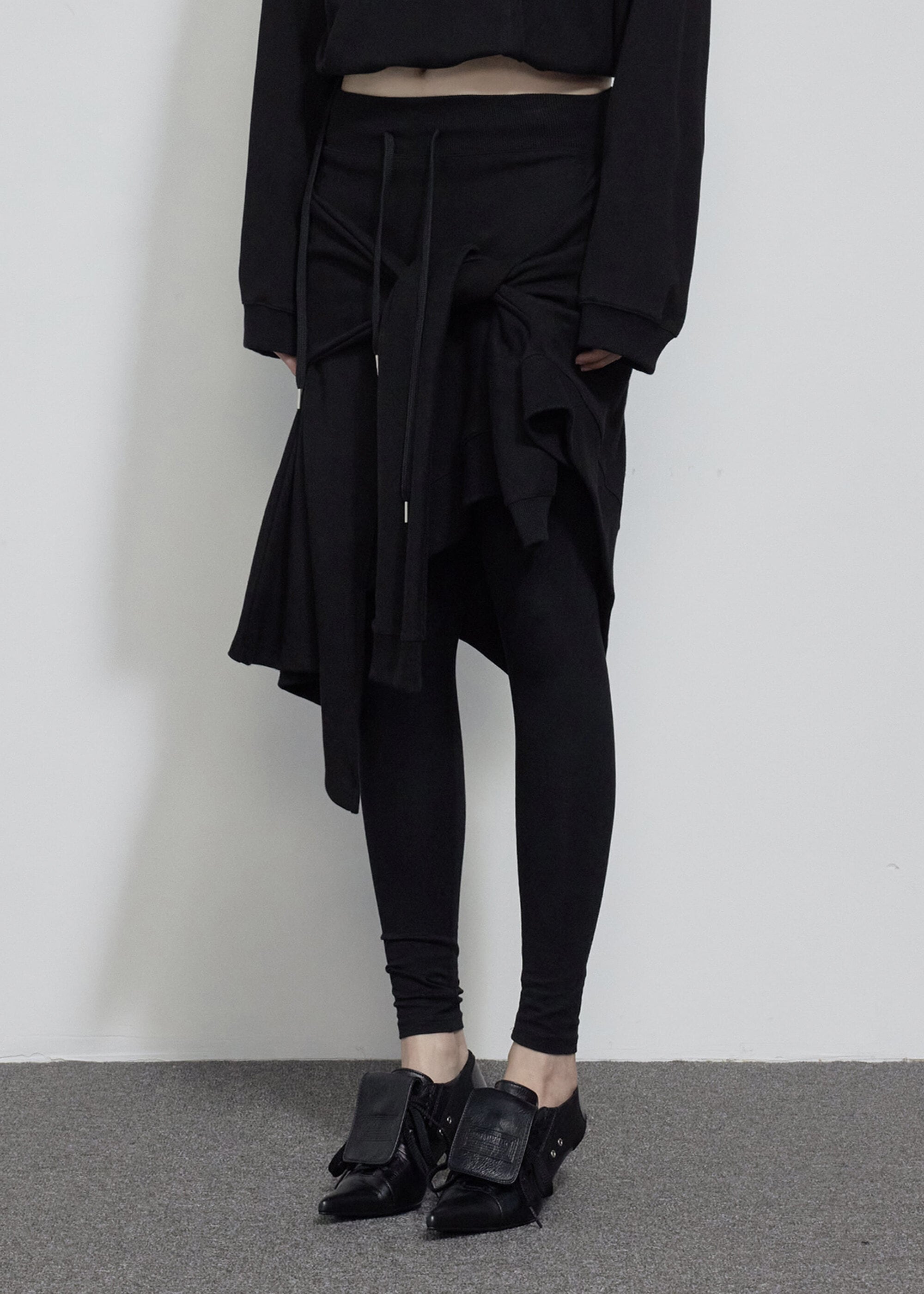 [BOHEMIAN SEOUL] UNBALANCED FLOW SWEAT SKIRT, BLACK