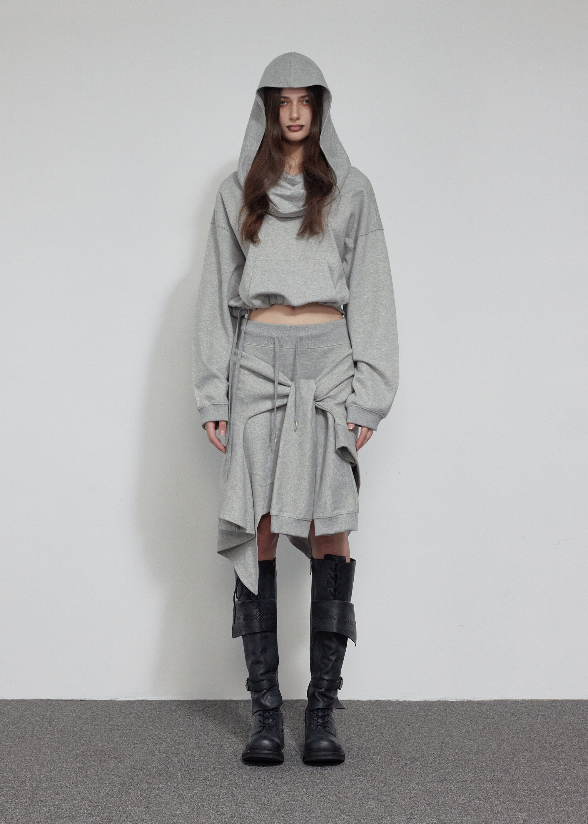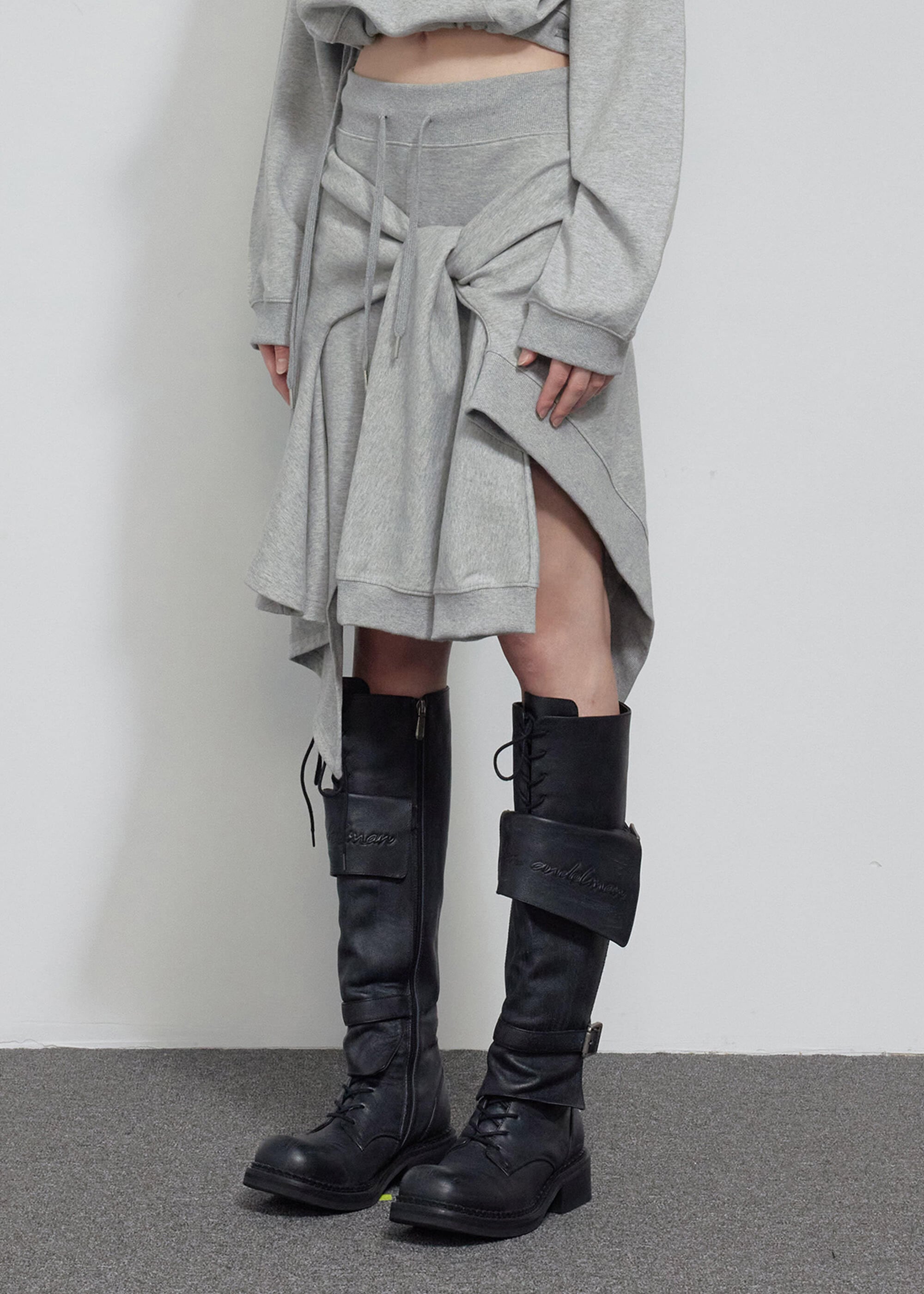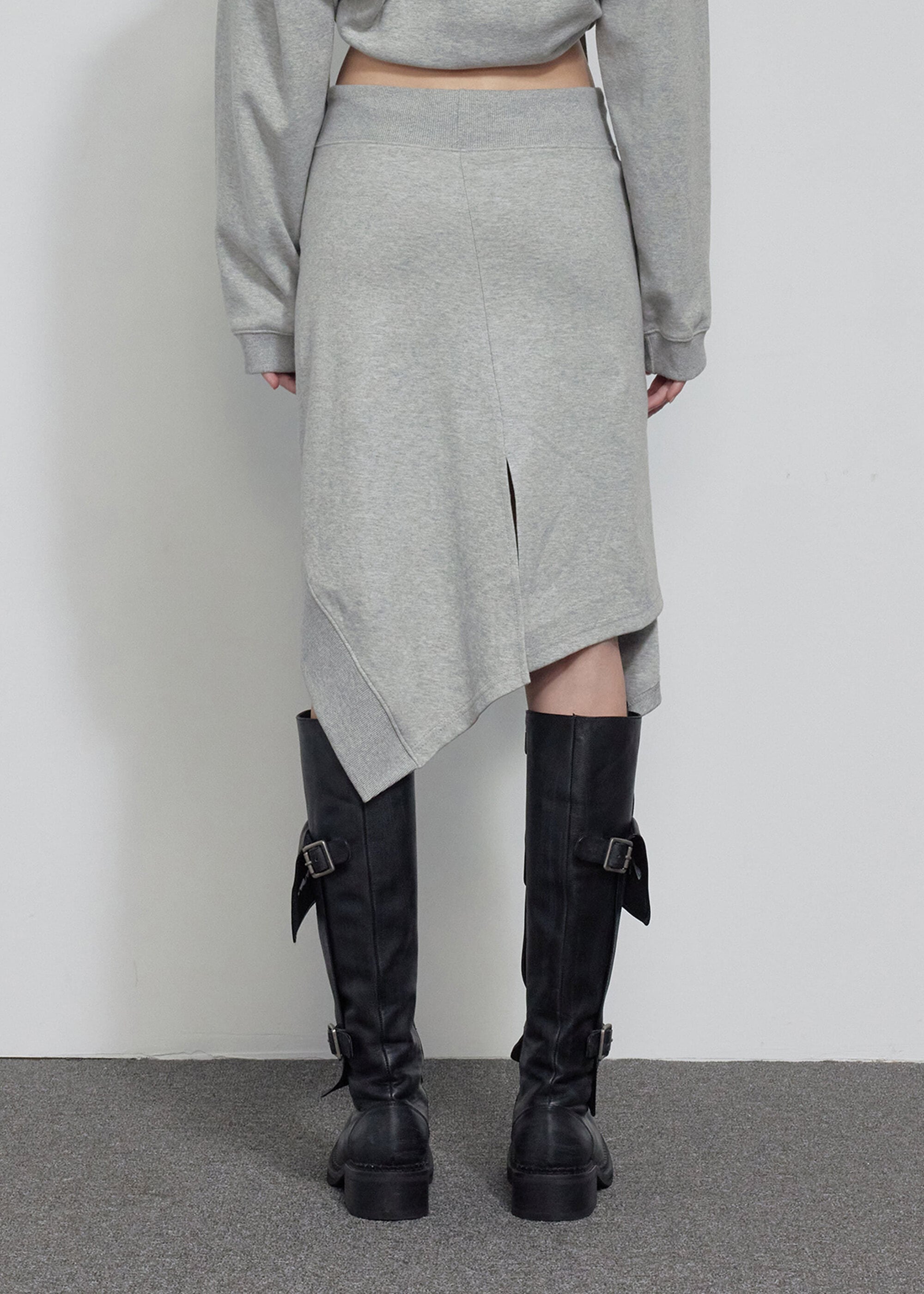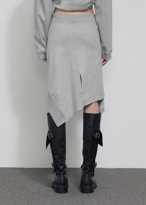 [BOHEMIAN SEOUL] UNBALANCED FLOW SWEAT SKIRT, MELANGE GRAY