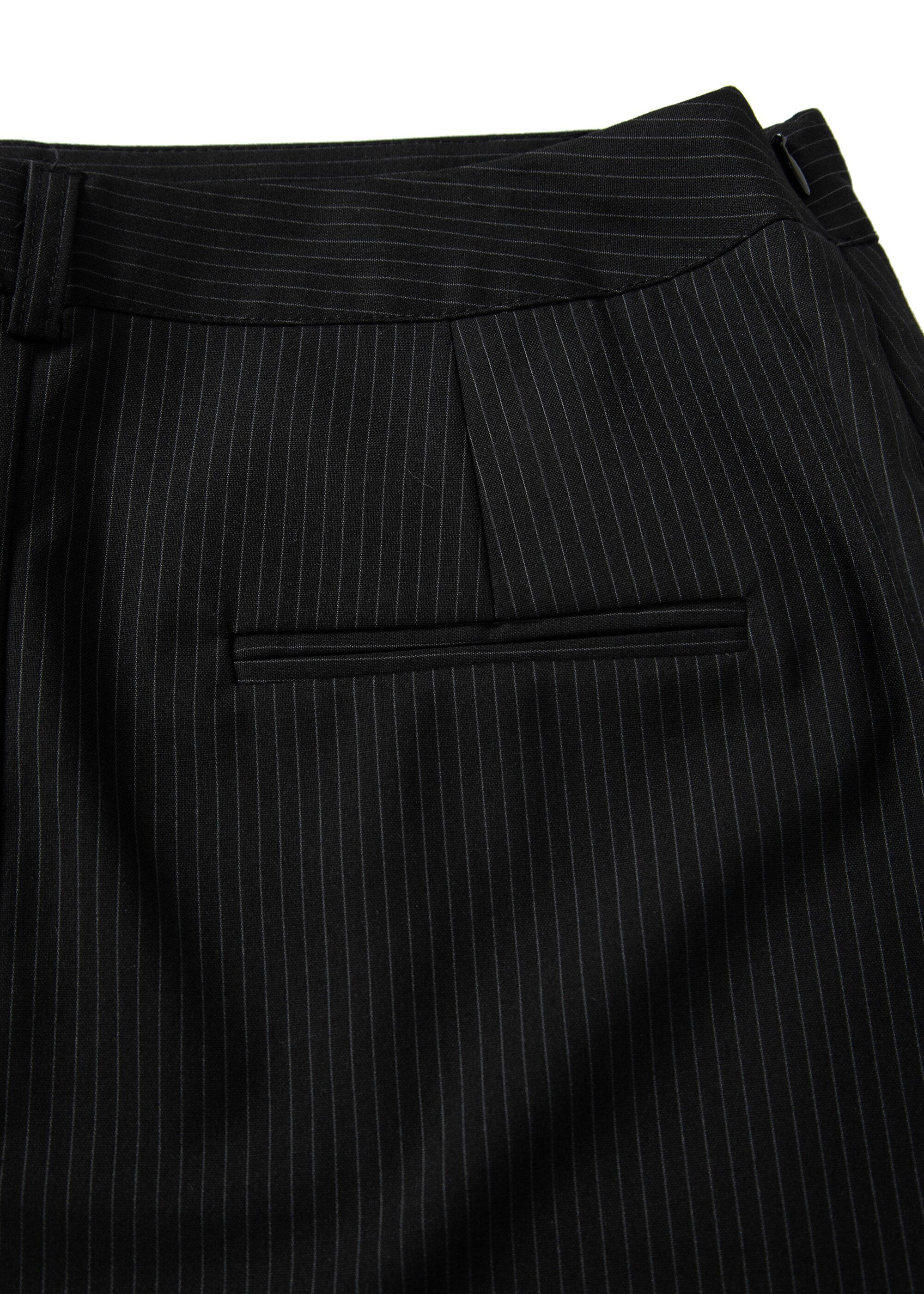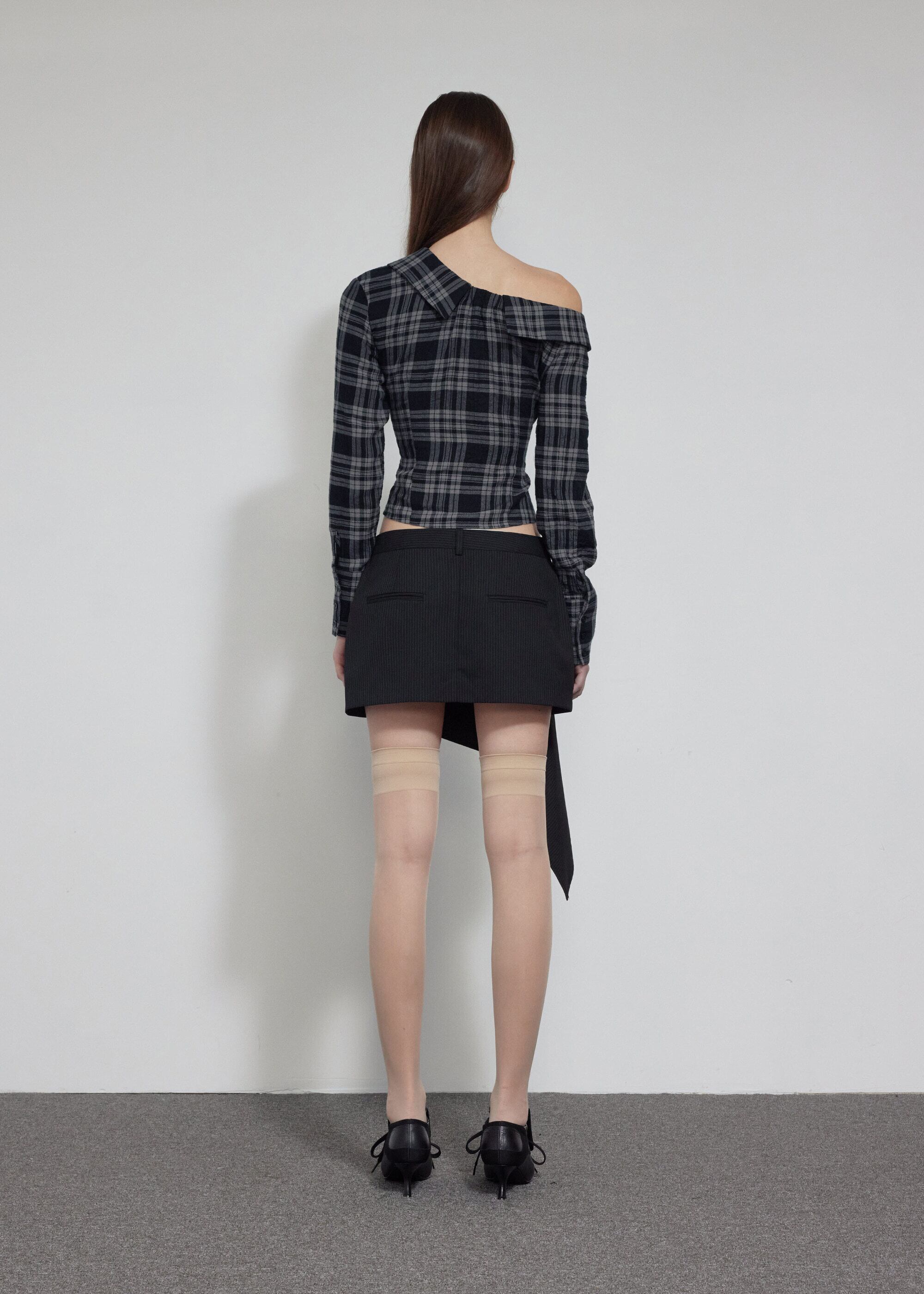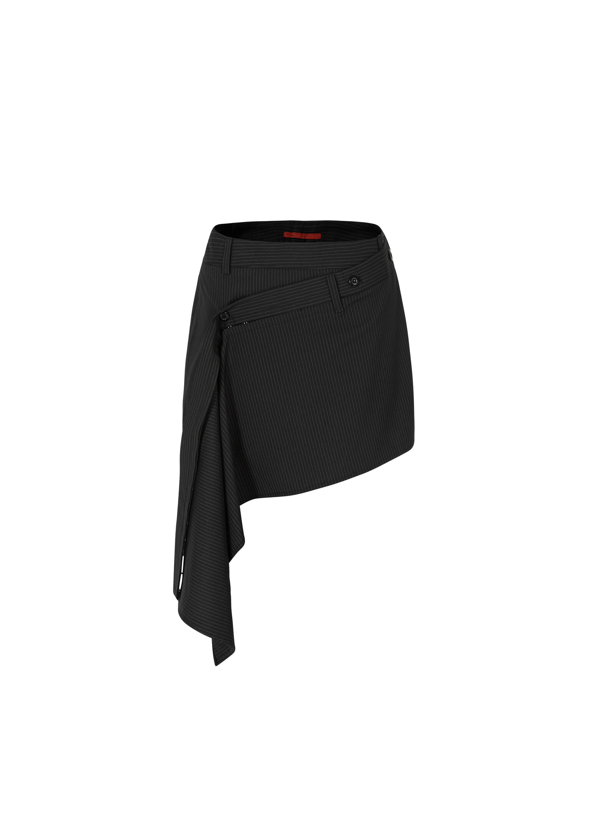 [BOHEMIAN SEOUL] UNBALANCED DRAPE MINI SKIRT, STRIPE BLACK