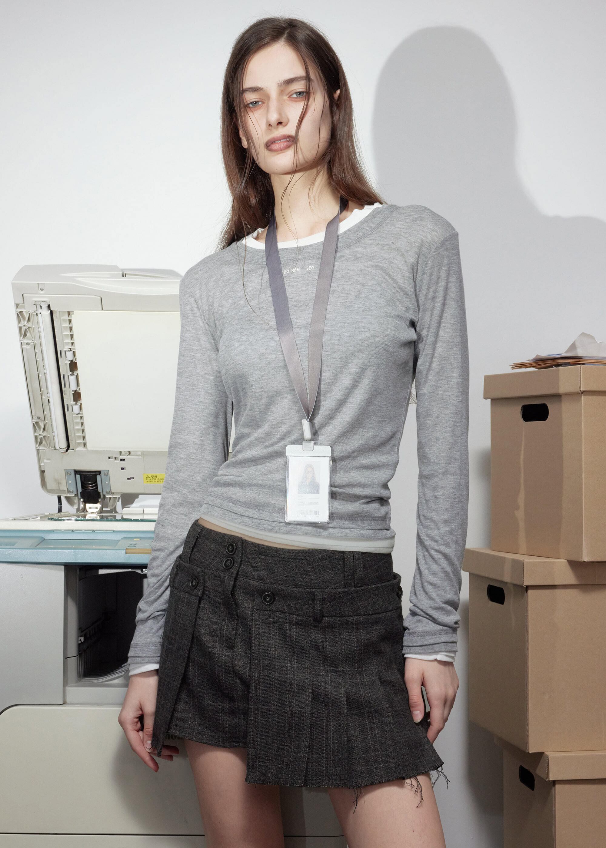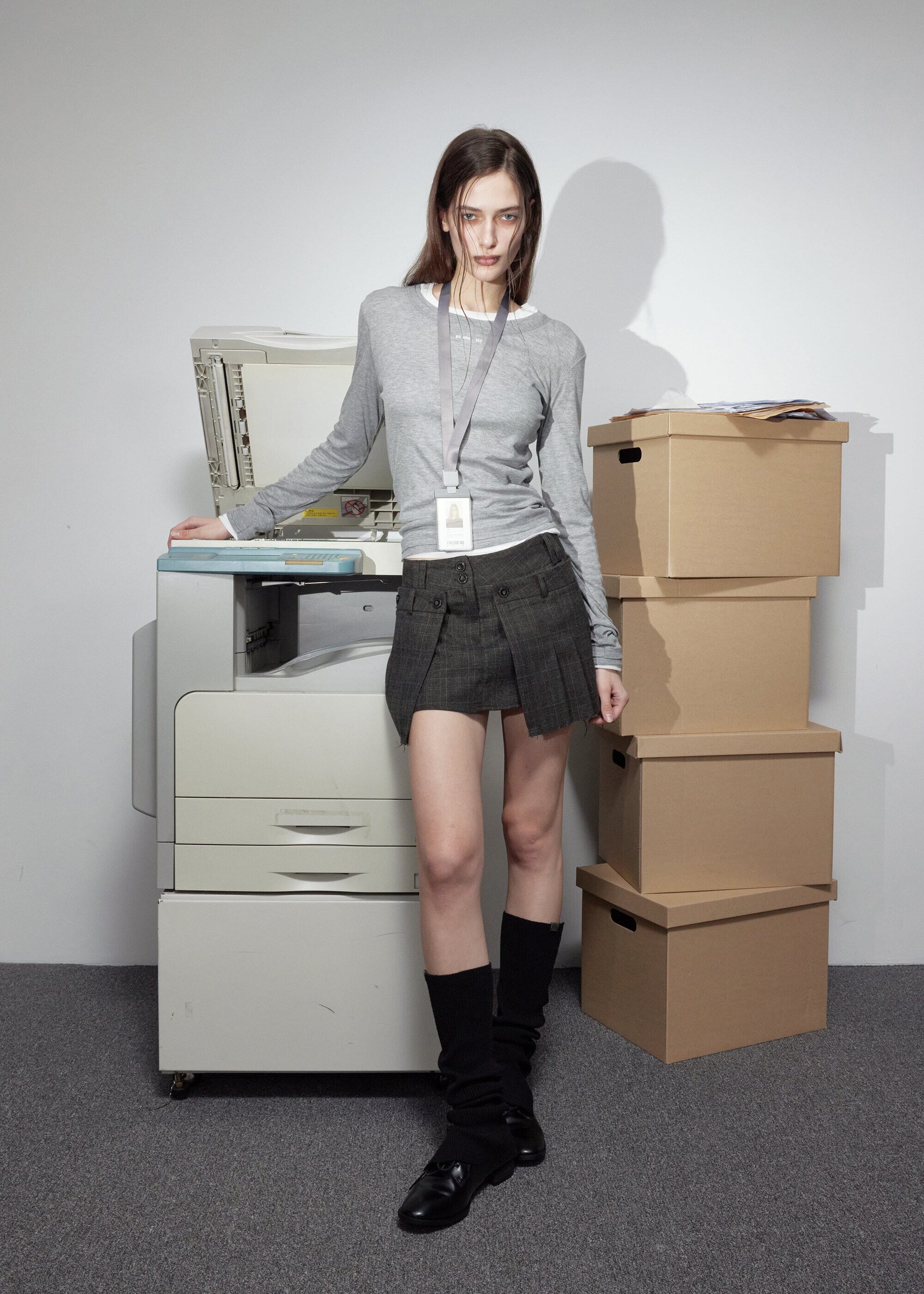 [BOHEMIAN SEOUL] LAYERED WRAP MINI SKIRT, CHECK CHARCOAL 正規品 韓国ブランド 韓国通販 韓国代行 韓国ファッション bohemseo ボヘミアンソウル ボヘムソ 日本 店舗
