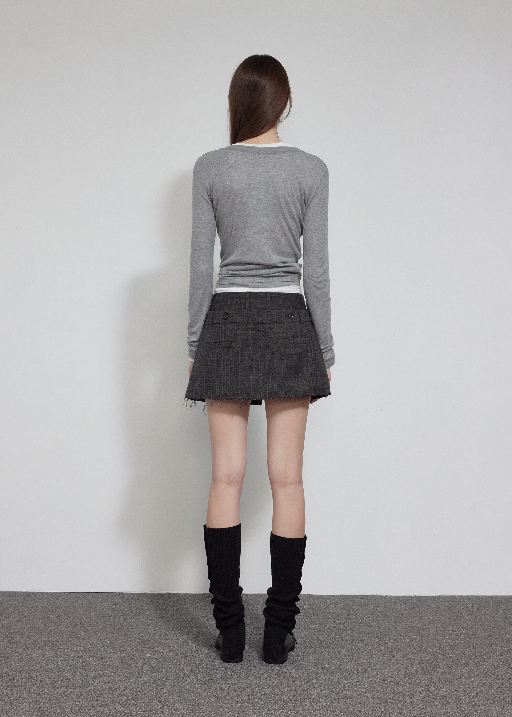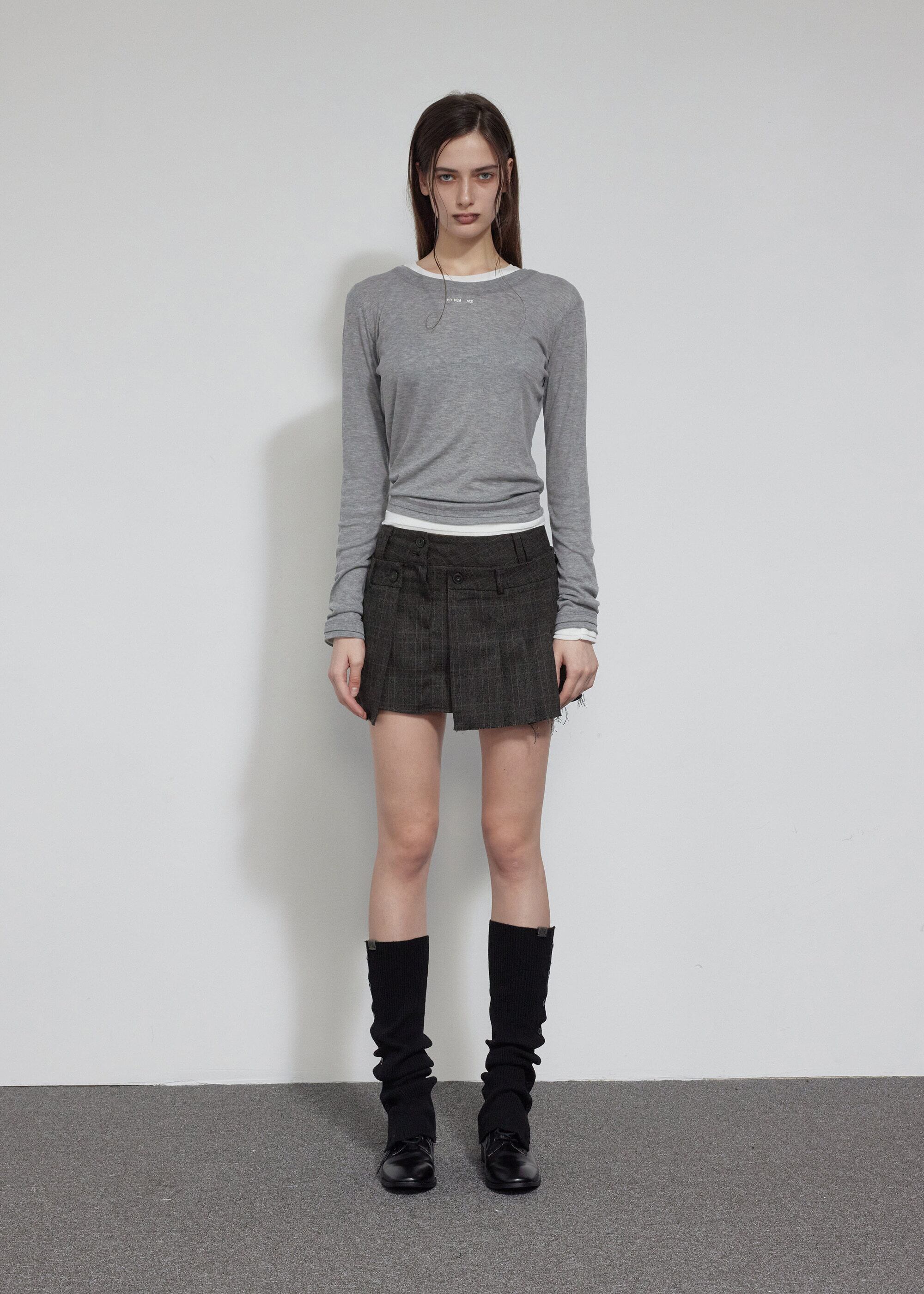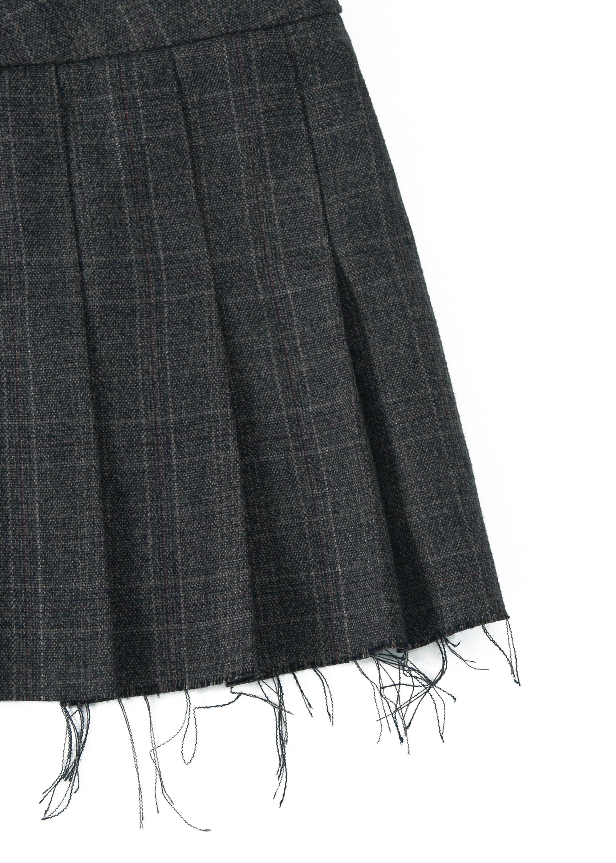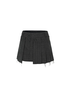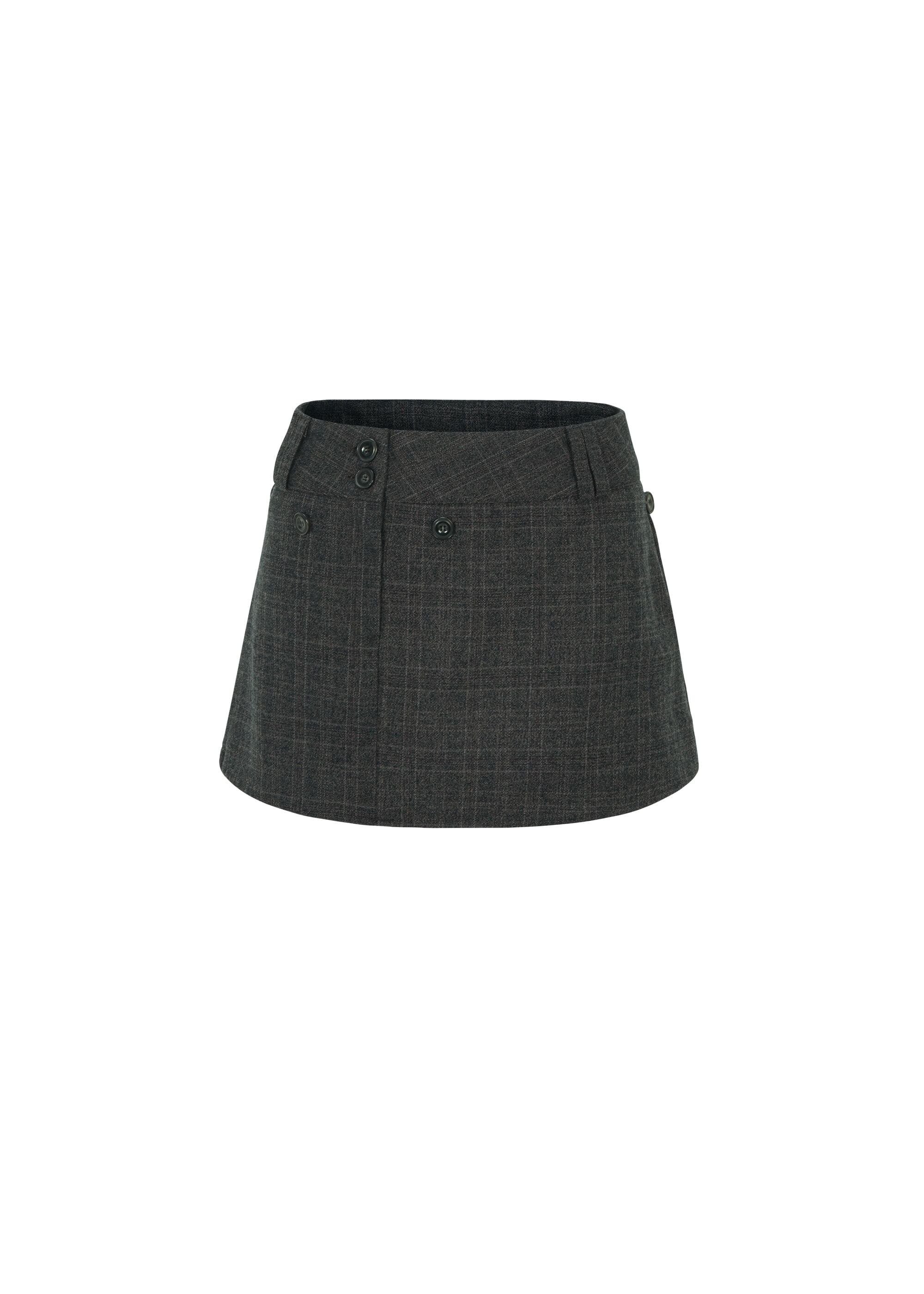 [BOHEMIAN SEOUL] LAYERED WRAP MINI SKIRT, CHECK CHARCOAL