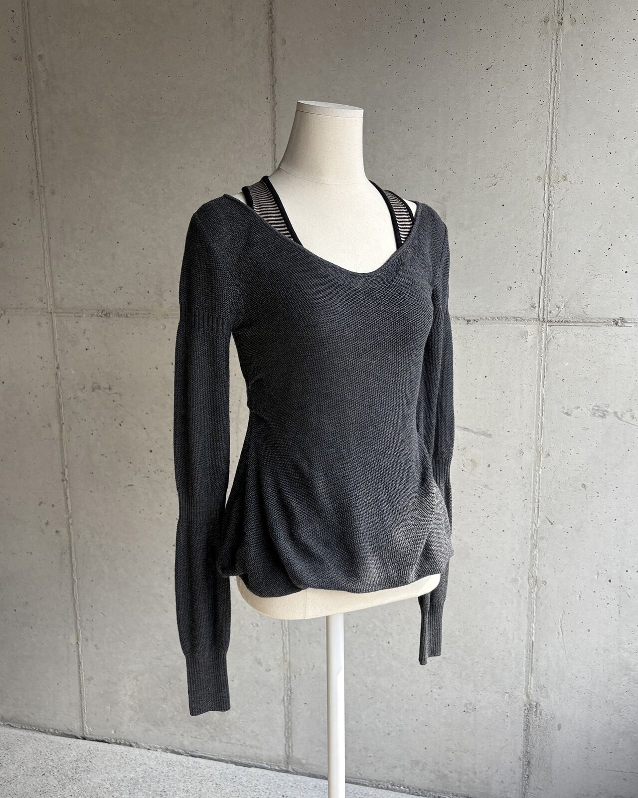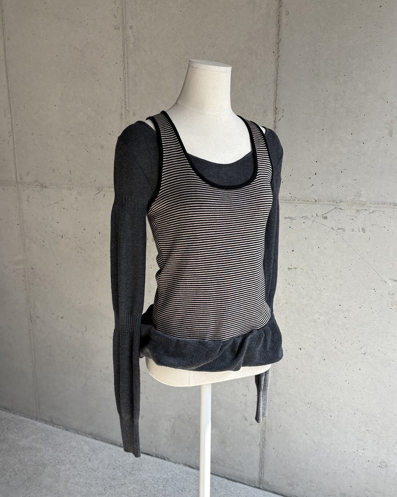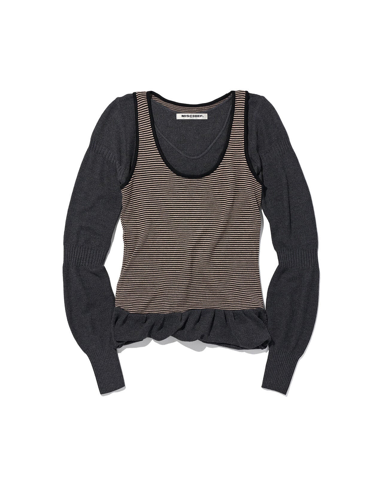 [MSCHF] RIPPLE LAYERED KNIT TOP_CHARCOAL/STRIPE