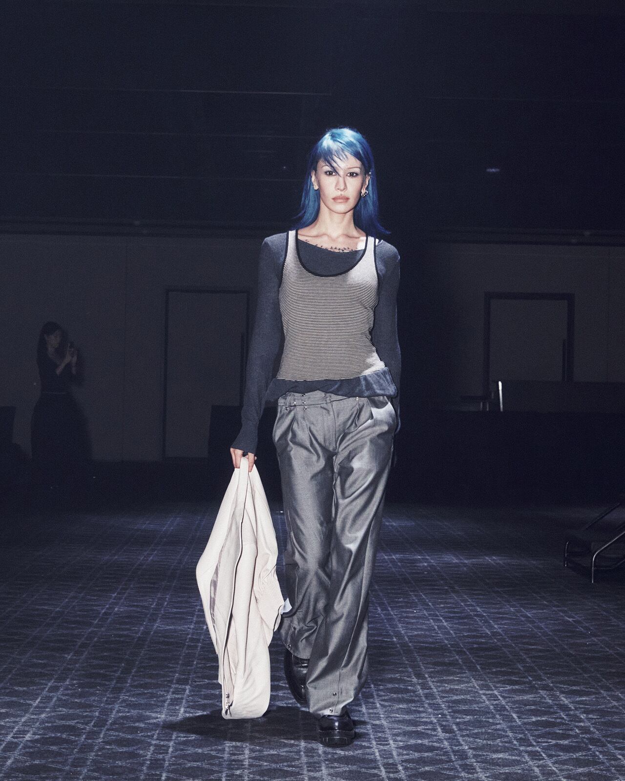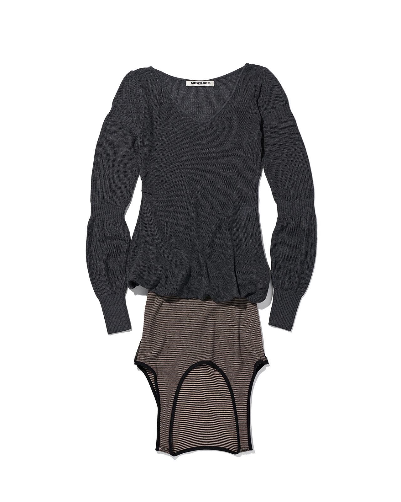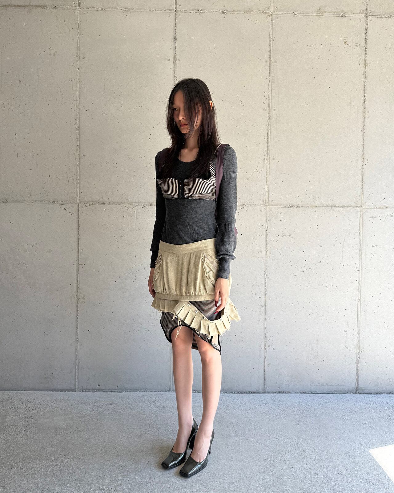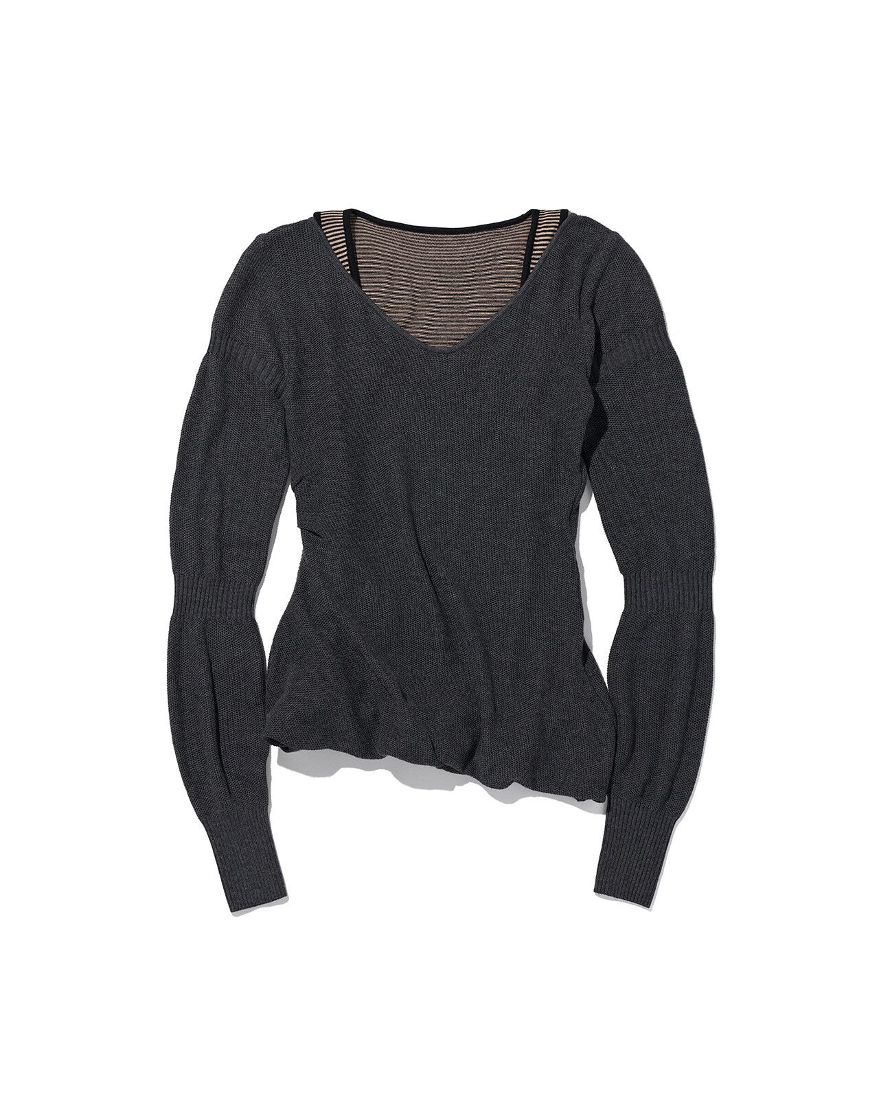 [MSCHF] RIPPLE LAYERED KNIT TOP_CHARCOAL/STRIPE