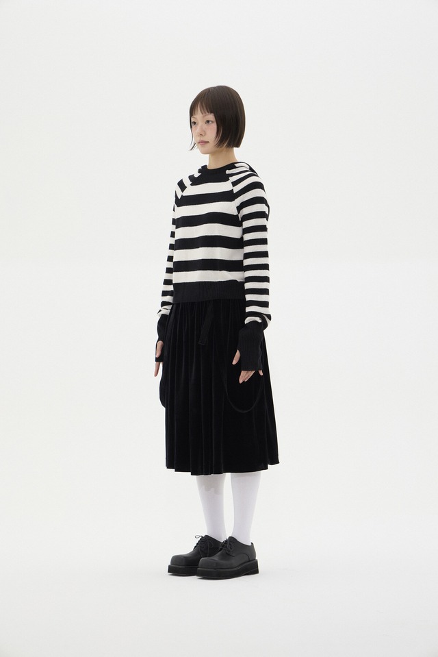 [BOCBOK] SCHOOL KNIT HOODIE (BLACK&IVORY)