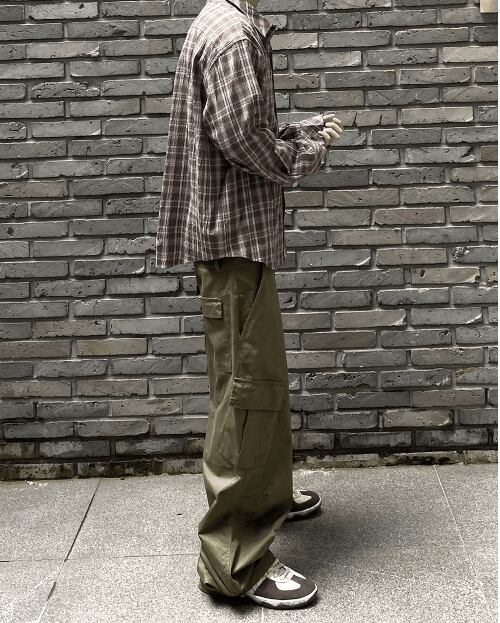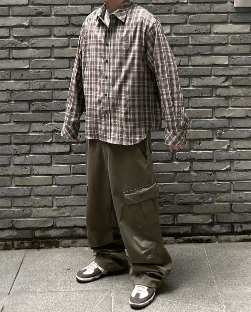 [UNDERMYCAR] MU.136 Circle Logo Basic Long Sleeve Check Shirts Dark Beige