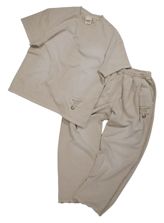 [UNDERMYCAR] Covernat X Undermycar Destroyed Patch T-Shirts Beige