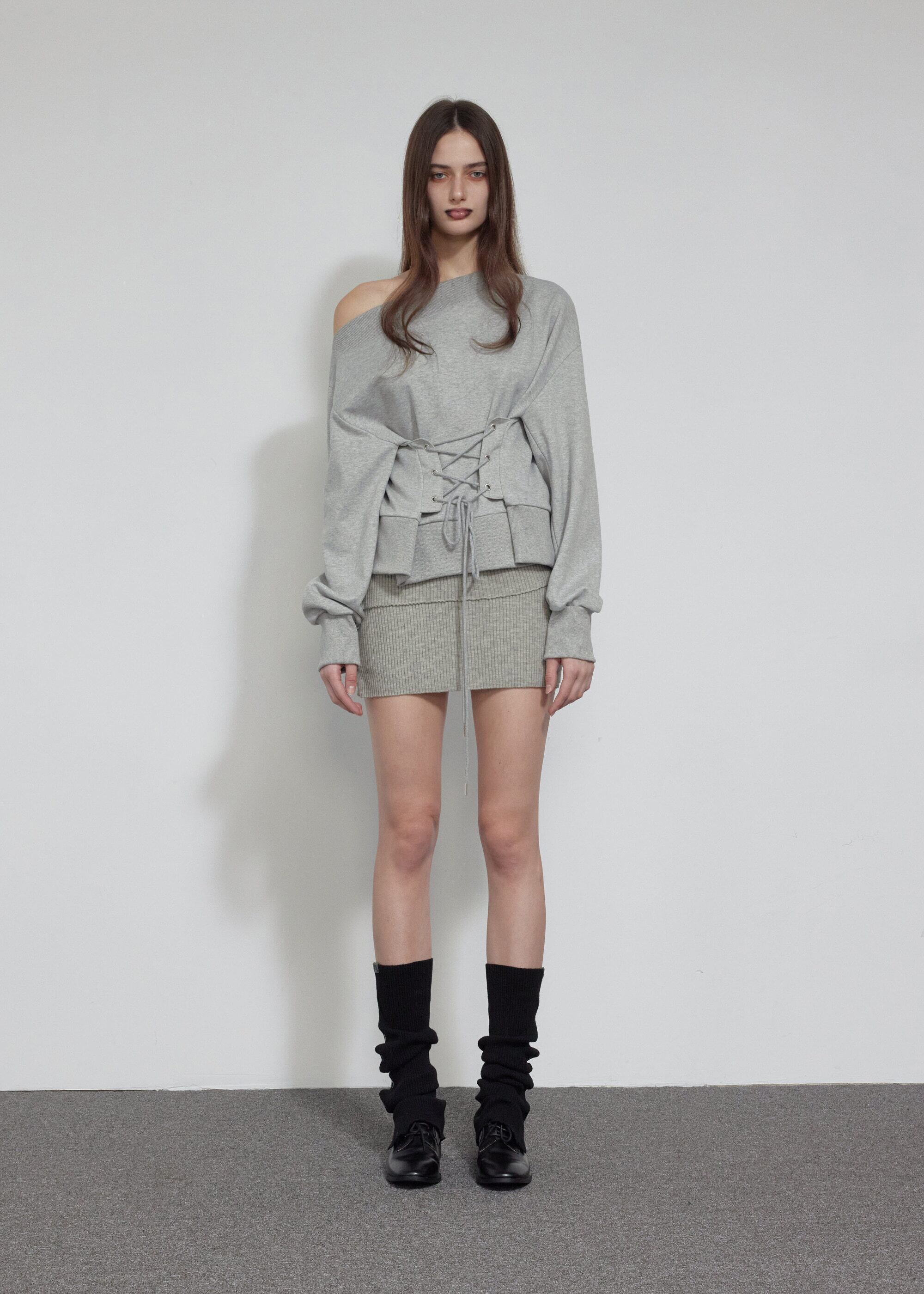 [BOHEMIAN SEOUL] LAYERED FOLDED KNIT SKIRT, MELANGE GRAY 正規品 韓国ブランド 韓国通販 韓国代行 韓国ファッション bohemseo ボヘミアンソウル ボヘムソ 日本 店舗