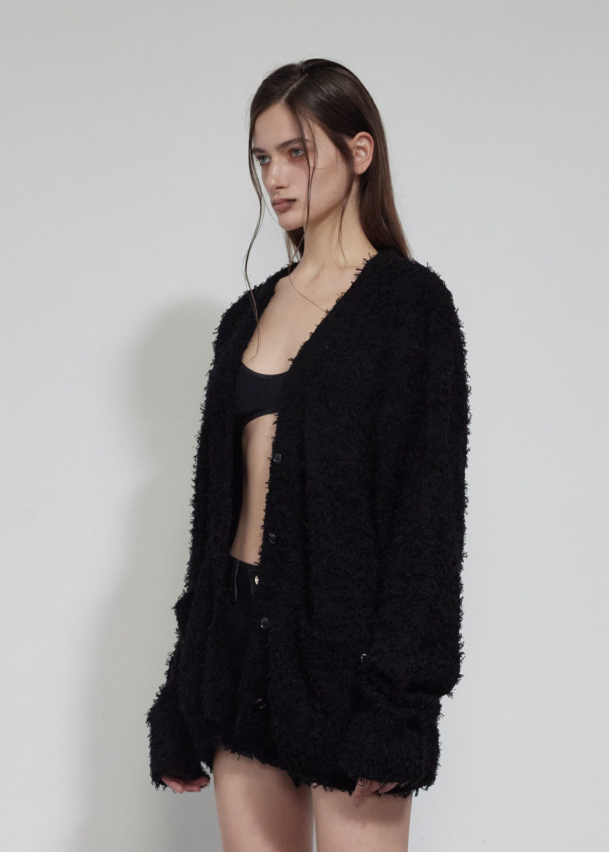 [BOHEMIAN SEOUL] HAIRY OVERFIT CARDIGAN, BLACK
