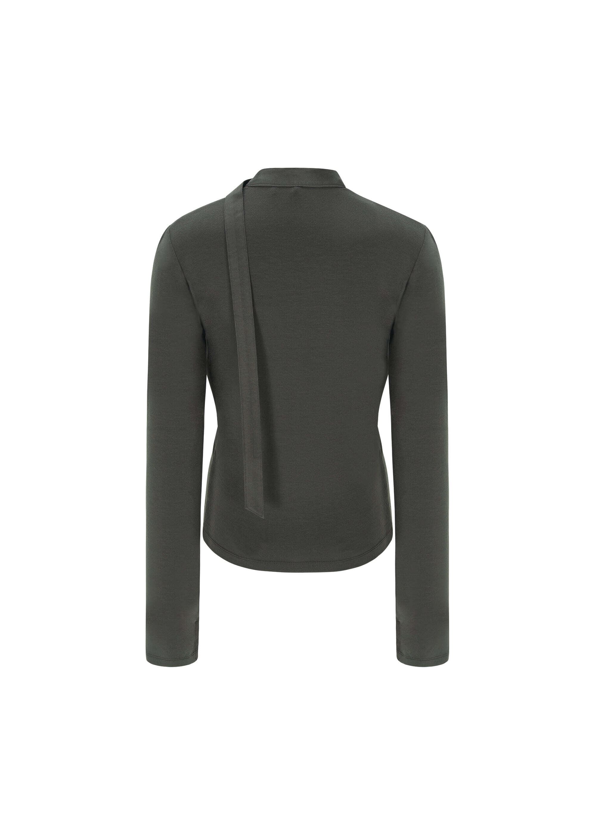[BOHEMIAN SEOUL] TIE DEEP V-NECK TOP, DEEP KHAKI