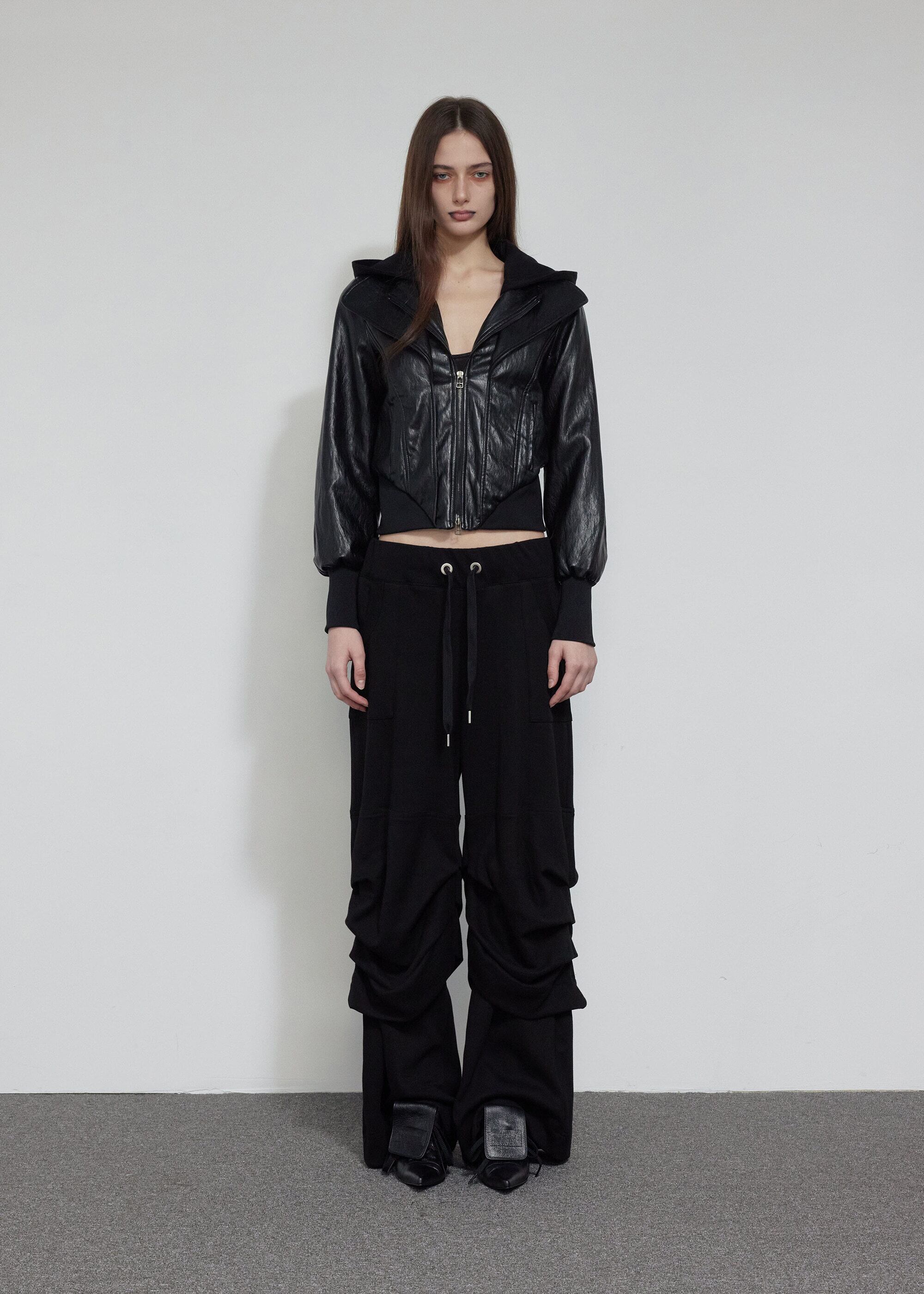 [BOHEMIAN SEOUL] LAYERED HOODIE LEATHER JACKET, BLACK 正規品 韓国ブランド 韓国通販 韓国代行 韓国ファッション bohemseo ボヘミアンソウル ボヘムソ 日本 店舗
