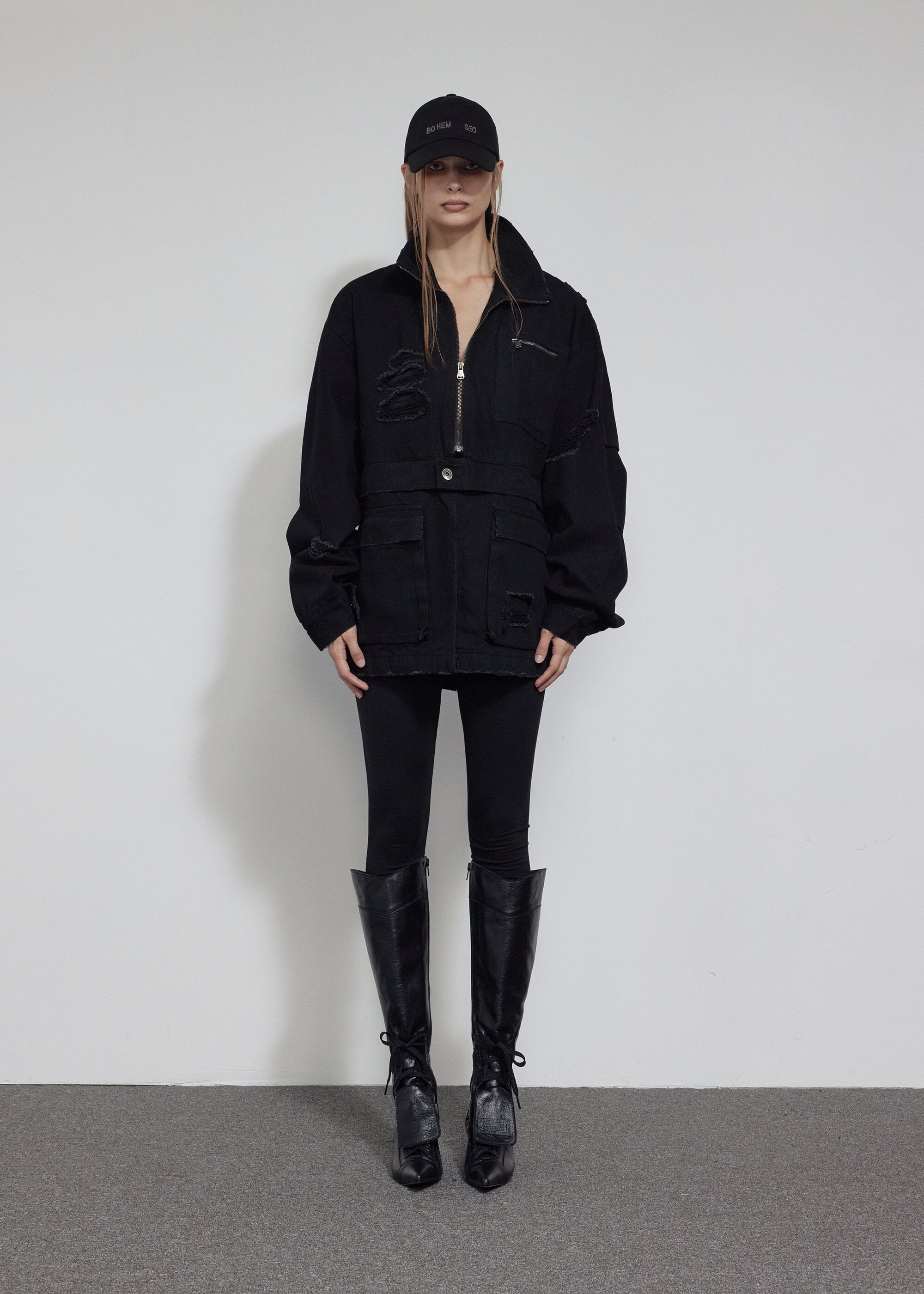 [BOHEMIAN SEOUL] DESTROYED FIELD JACKET, BLACK 正規品 韓国ブランド 韓国通販 韓国代行 韓国ファッション bohemseo ボヘミアンソウル ボヘムソ 日本 店舗