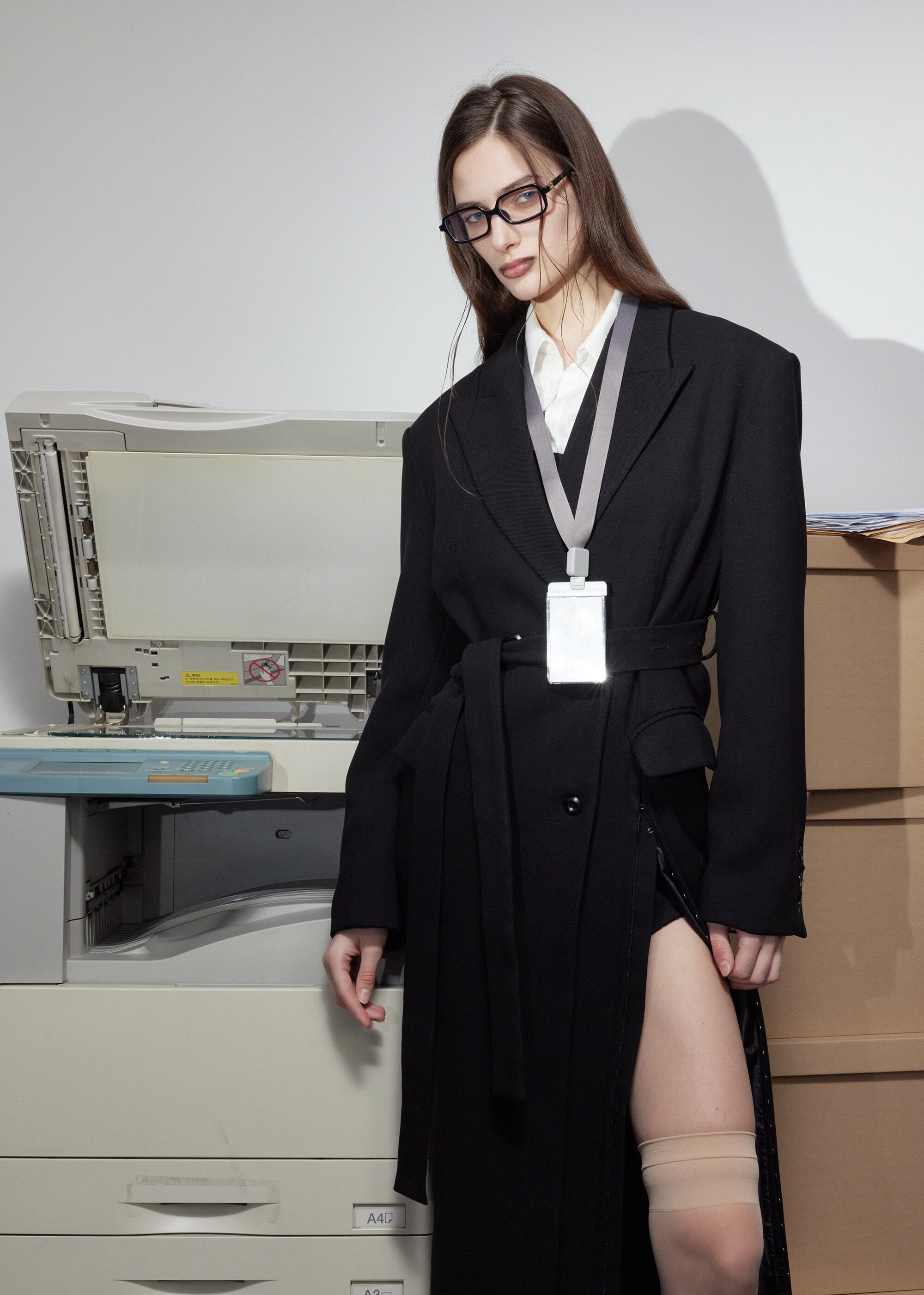 [BOHEMIAN SEOUL] HOOKED SLIT MAXI DOUBLE COAT, BLACK 正規品 韓国ブランド 韓国通販 韓国代行 韓国ファッション bohemseo ボヘミアンソウル ボヘムソ 日本 店舗