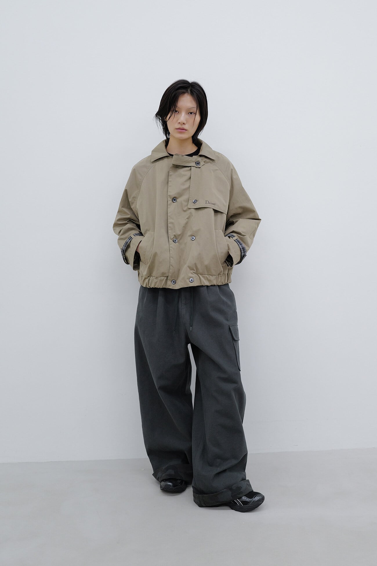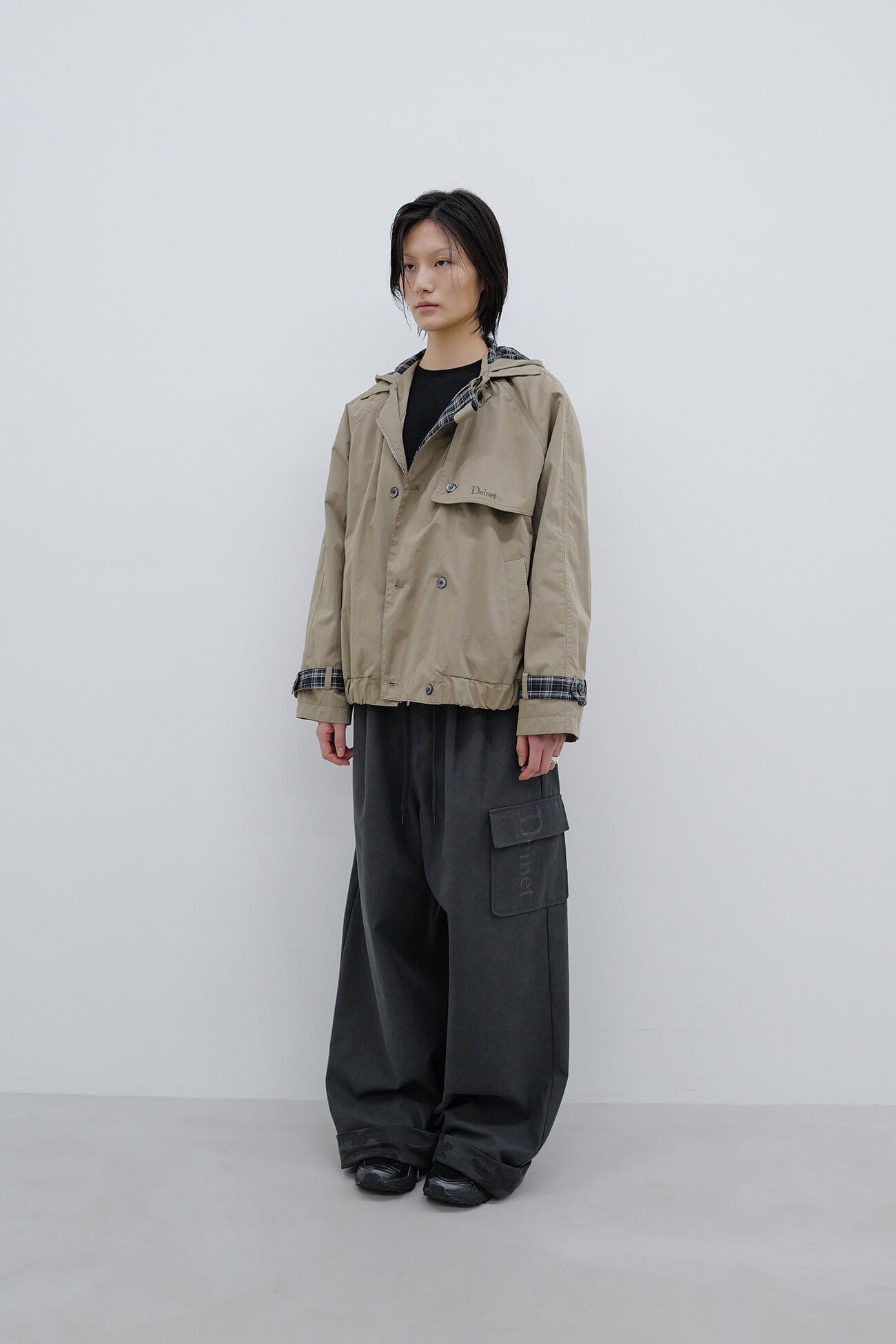 [DEINET] DEINET ROLL UP CARGO BANDING PANTS IN CHARCOAL 正規品 韓国ブランド 韓国通販 韓国代行 韓国ファッション デイネット ダイニット 日本 店舗