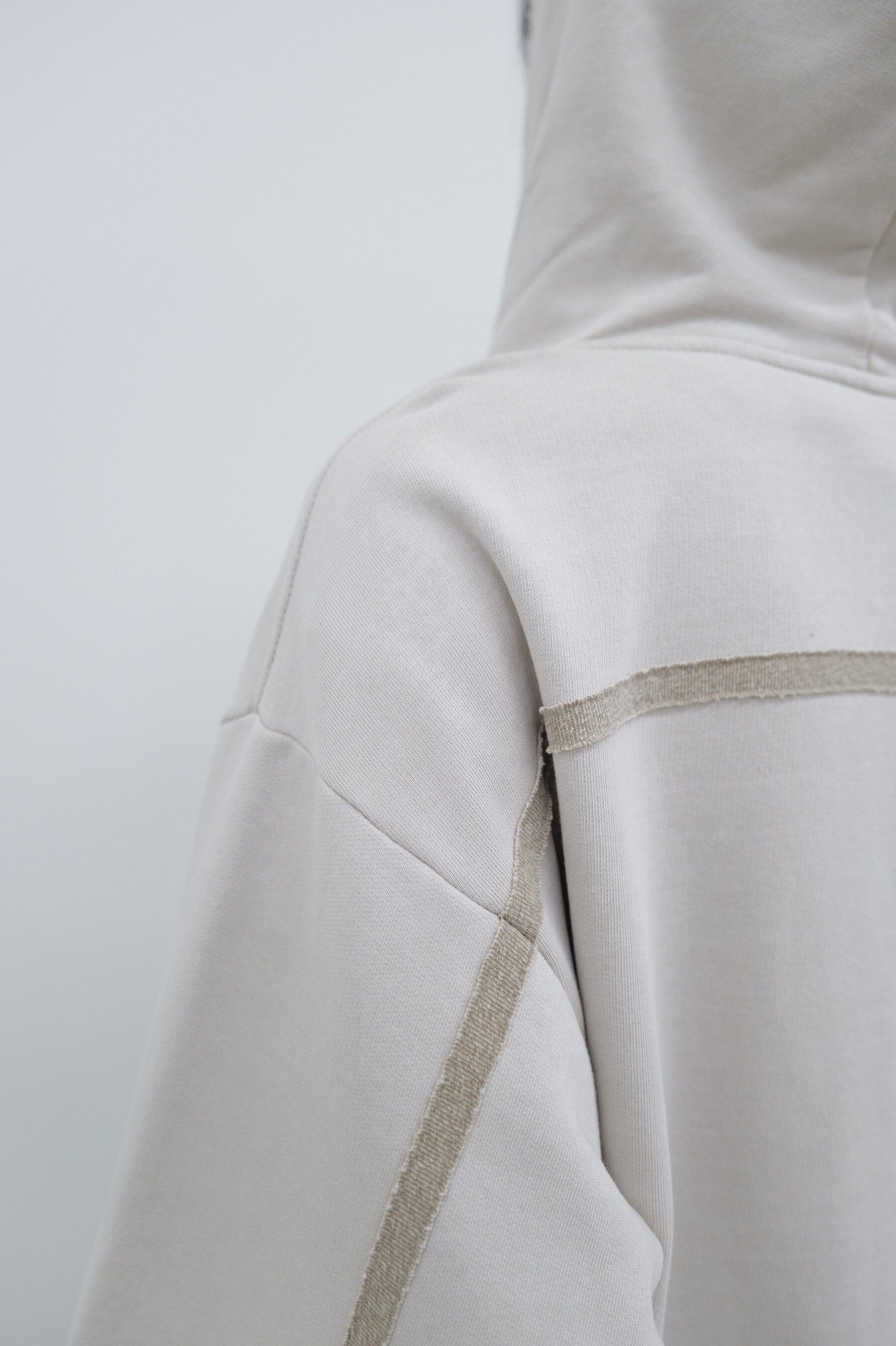 [DEINET] CUT OFF DETAIL ZIP-UP HOODIE IN BEIGE