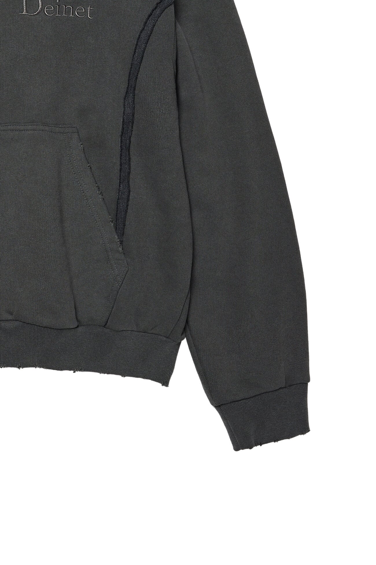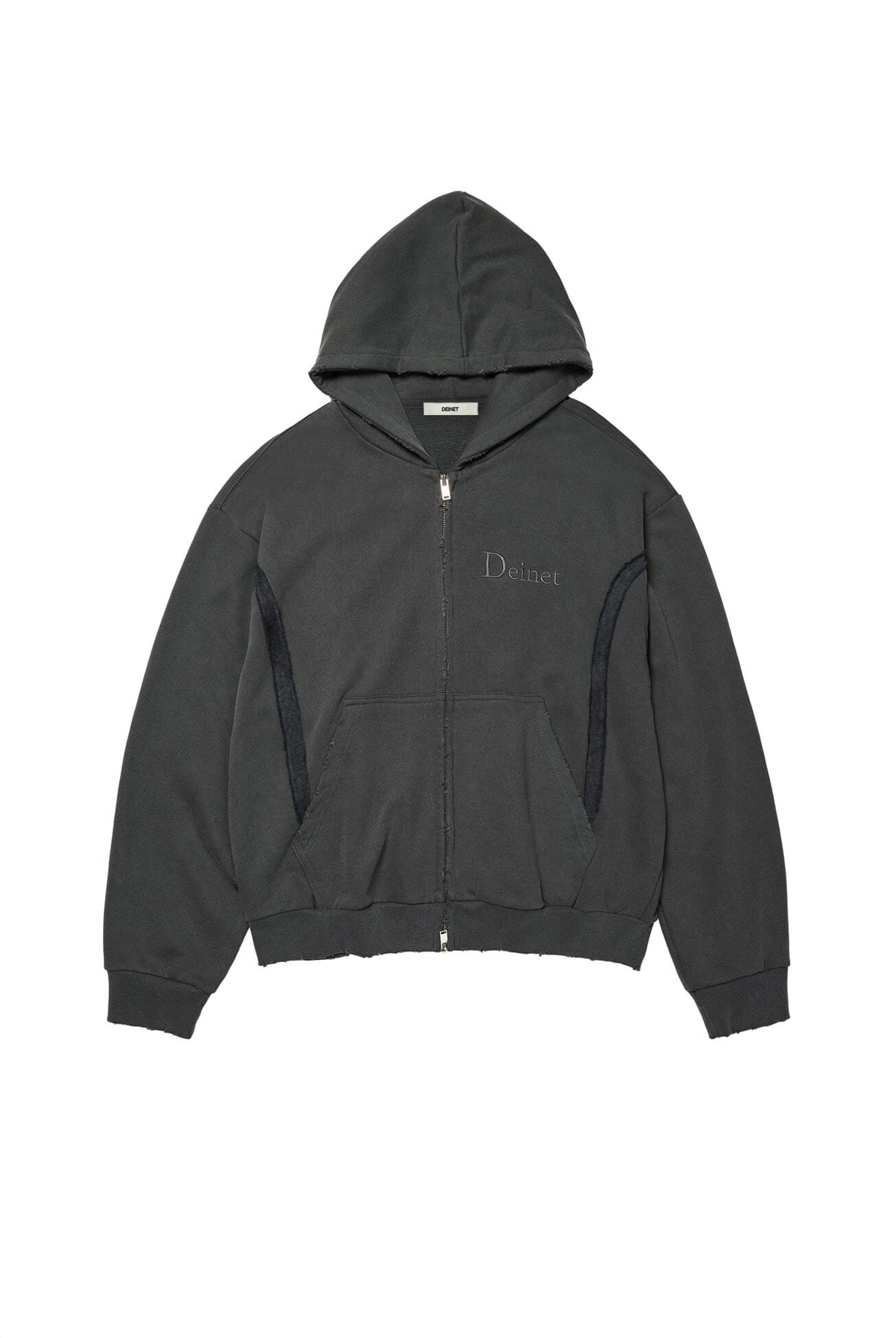 [DEINET] CUT OFF DETAIL ZIP-UP HOODIE IN CHARCOAL