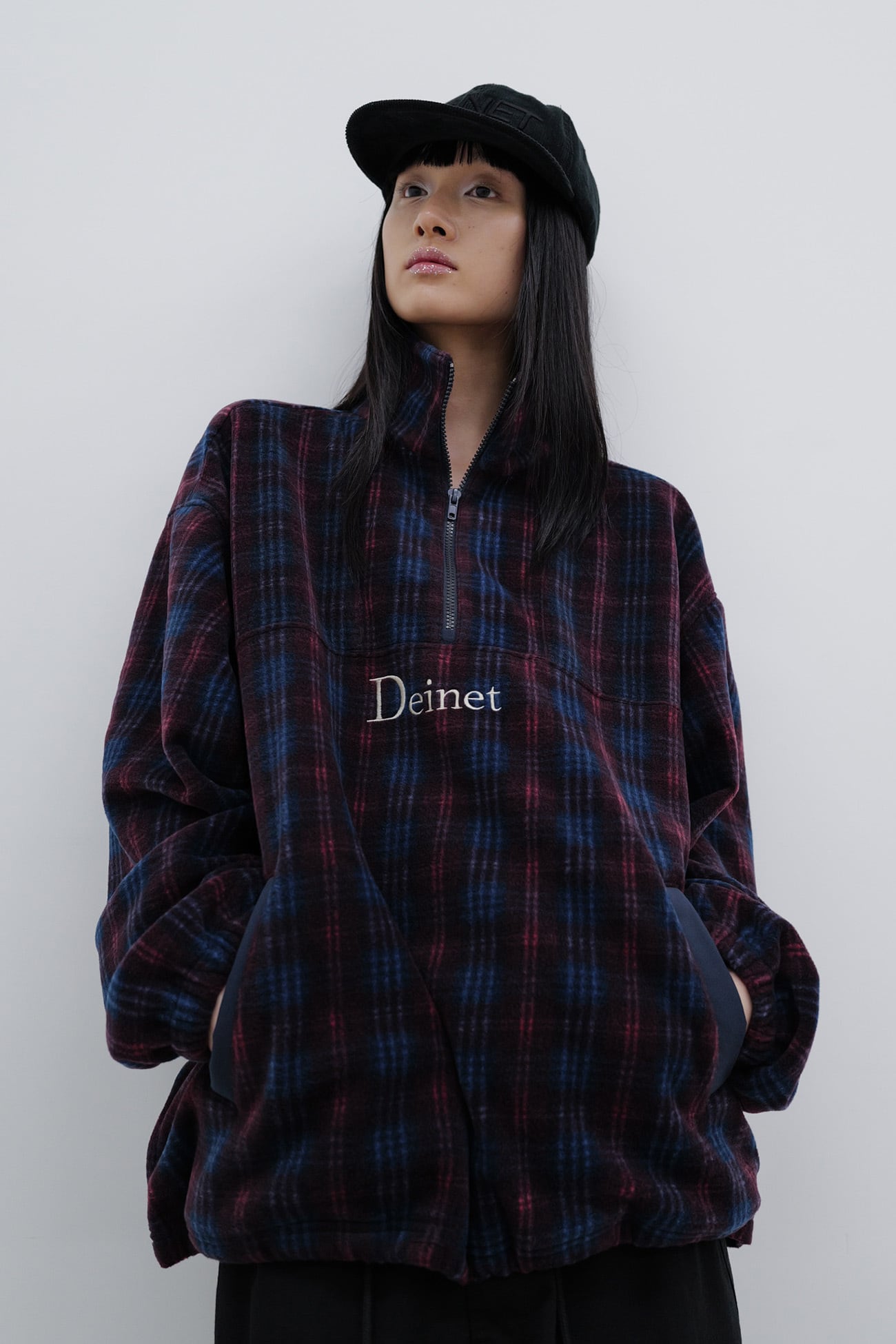 [DEINET] DEINET CHECK FLEECE ZIP-UP IN PURPLE 正規品 韓国ブランド 韓国通販 韓国代行 韓国ファッション デイネット ダイニット 日本 店舗