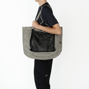 グリッド素材で作られたトレイルトートバッグは、アウトドアからデイリーライフまで幅広く活用できる多用途バッグです。