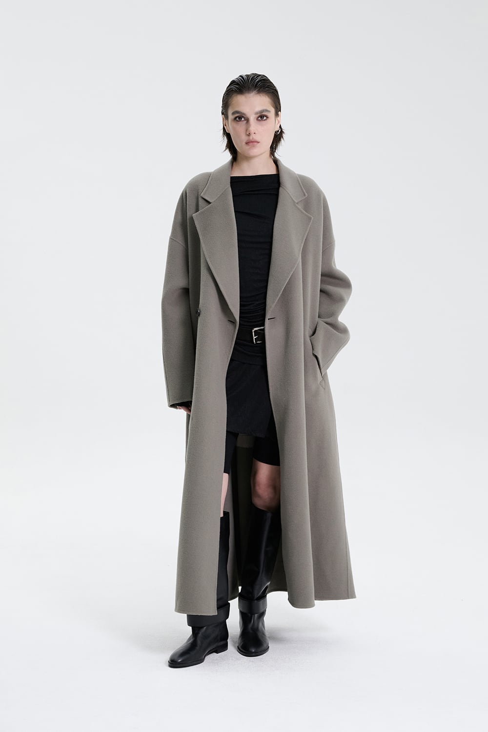 [TREEMINGBIRD] Handmade) Wide Long Coat [ Khaki Gray ]