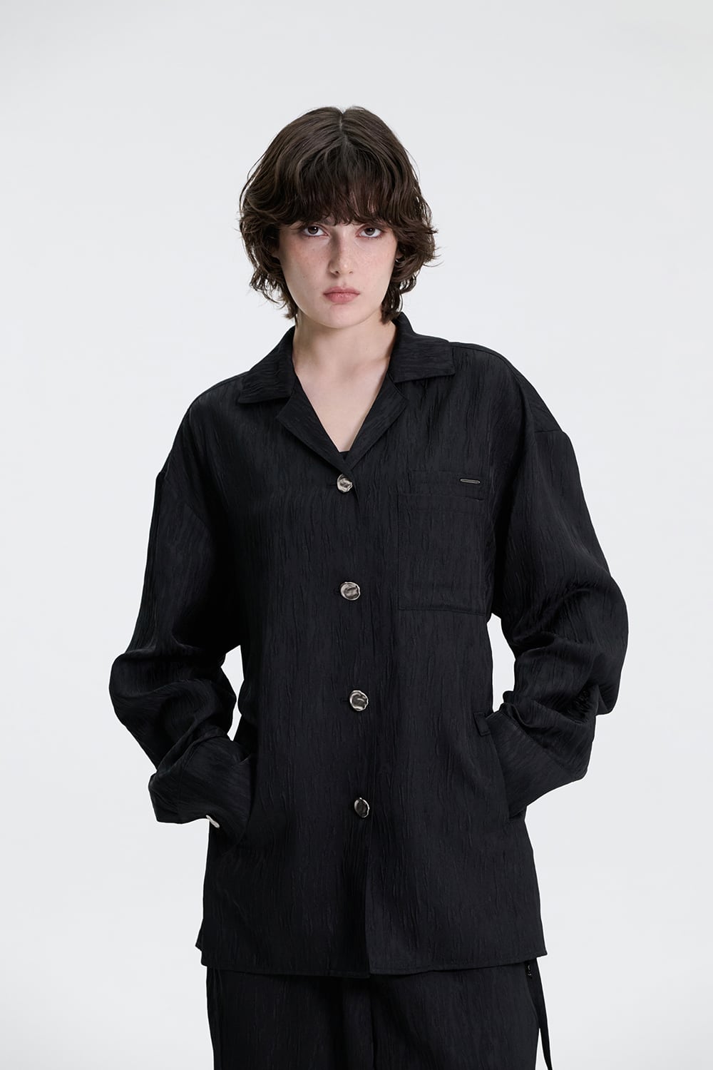 [TREEMINGBIRD] Jacquard Easy Set-up Shirt [ Black ]