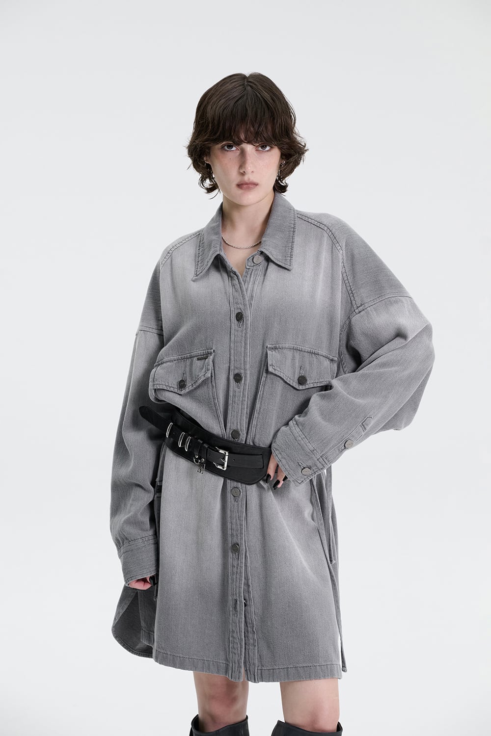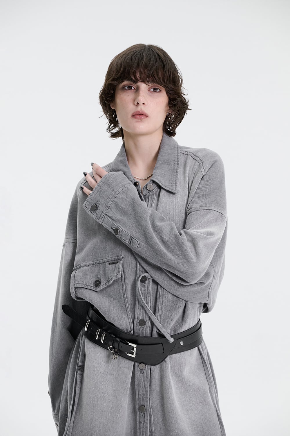 [TREEMINGBIRD] Washed Denim Strap One-piece [ Gray ]