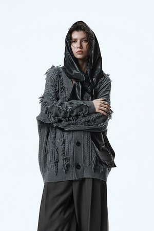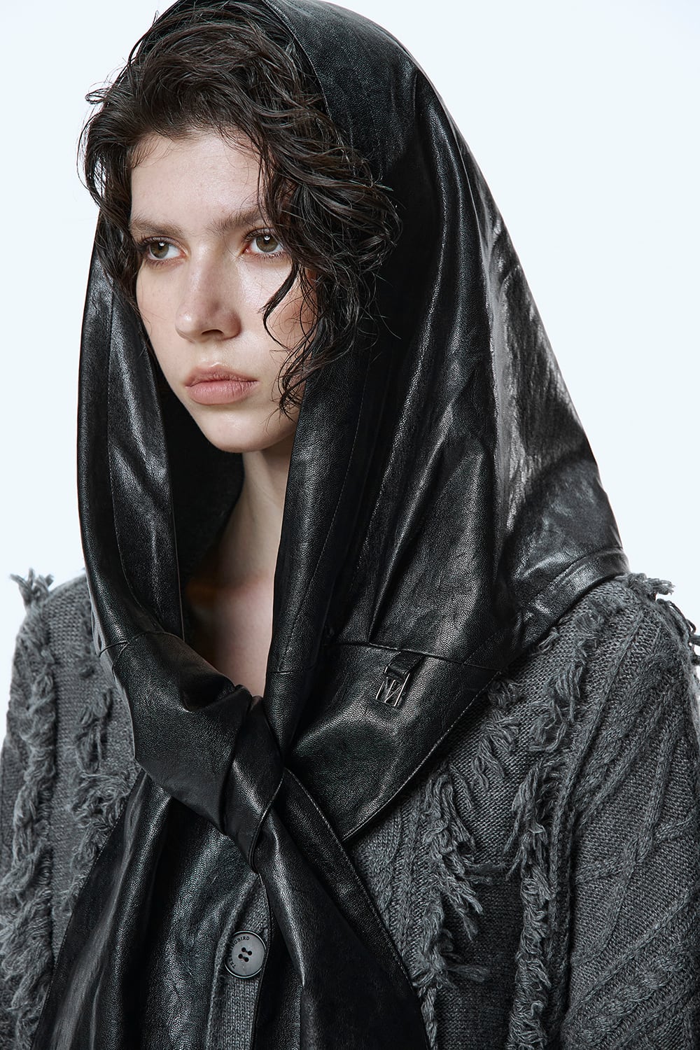 [TREEMINGBIRD] Hooded Leather Scarf [ Black ]