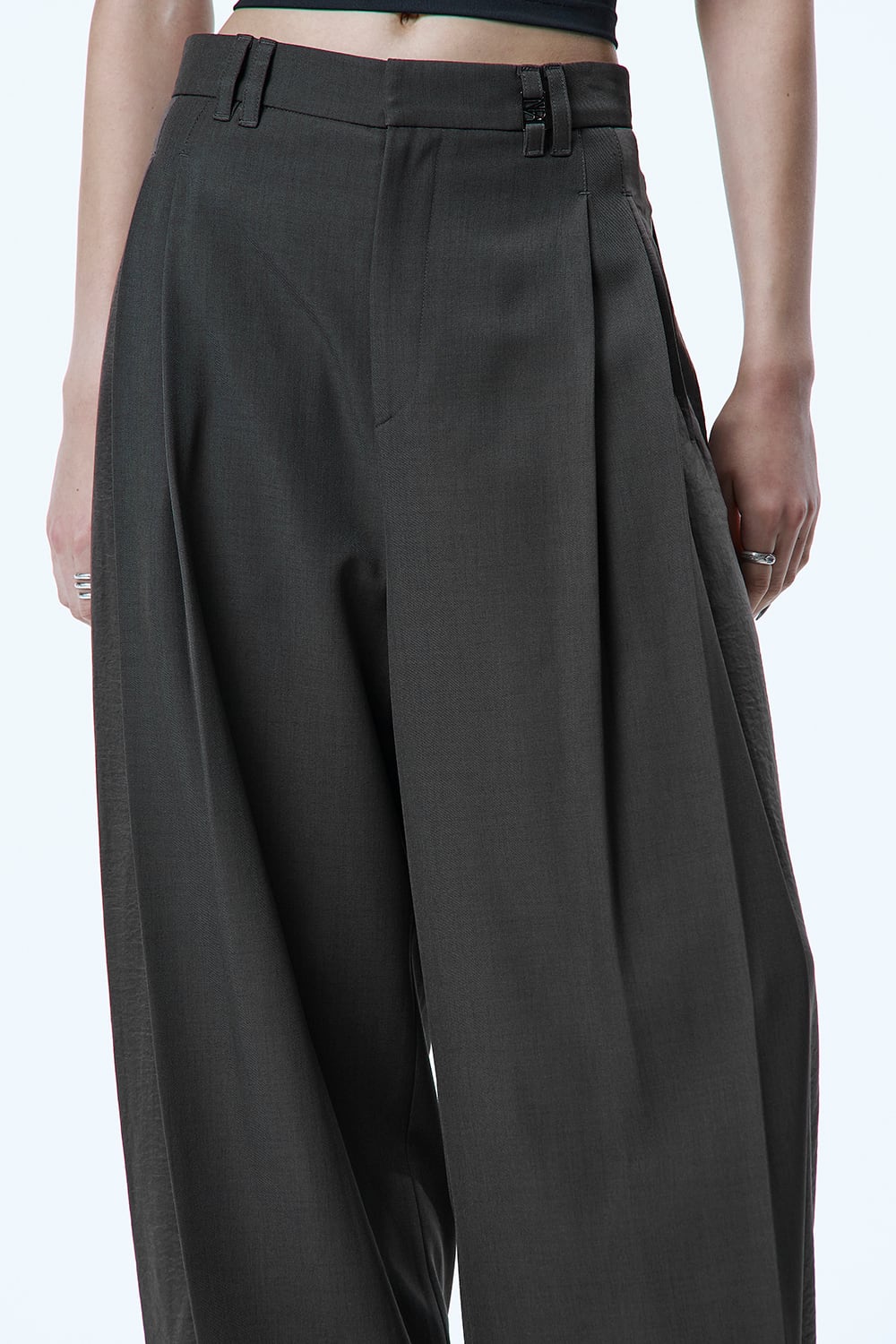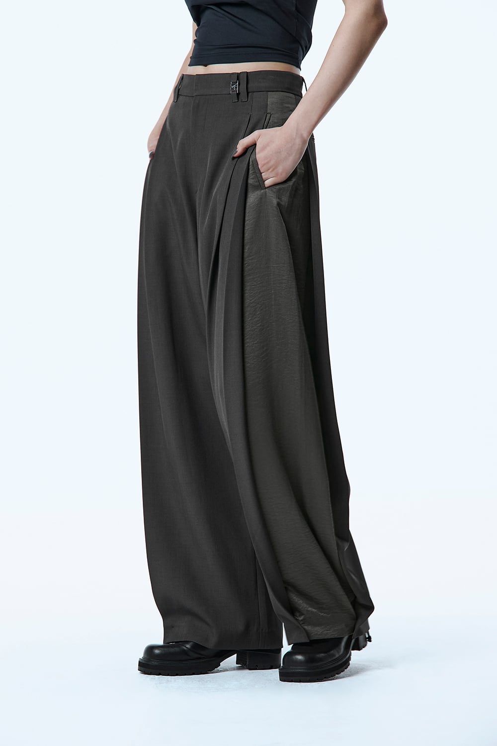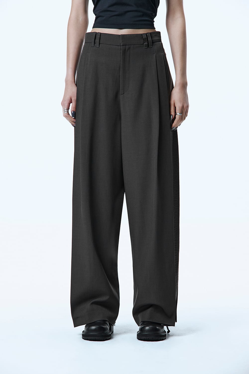 [TREEMINGBIRD] Side Panel Tuck Slacks [ Charcoal ]