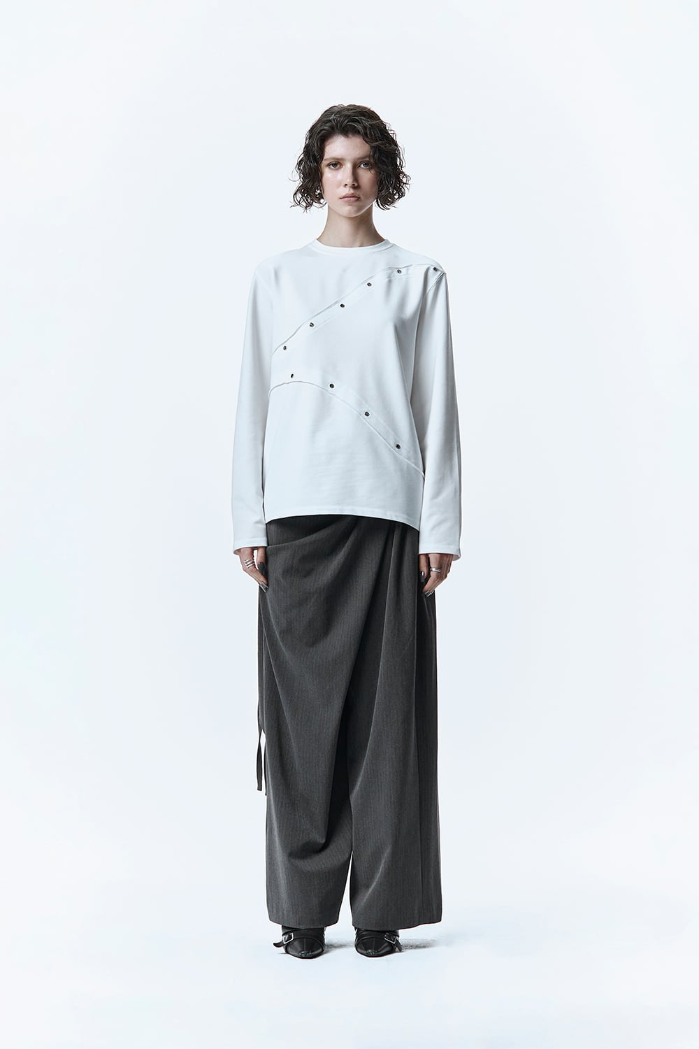 [TREEMINGBIRD] Draped Overlay Slacks [ Charcoal ]