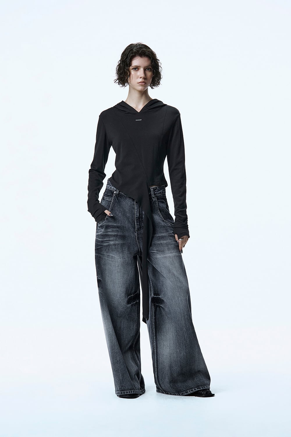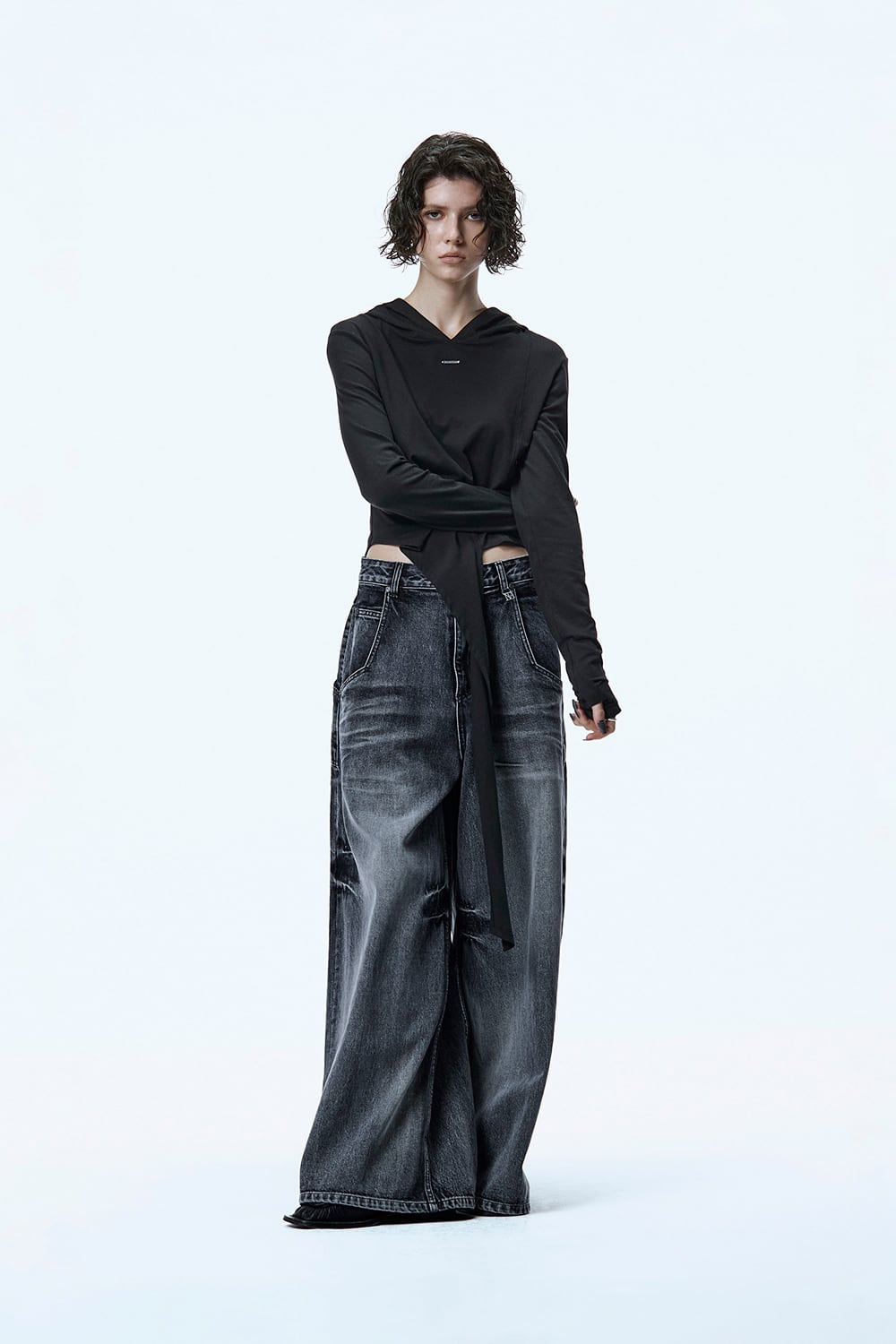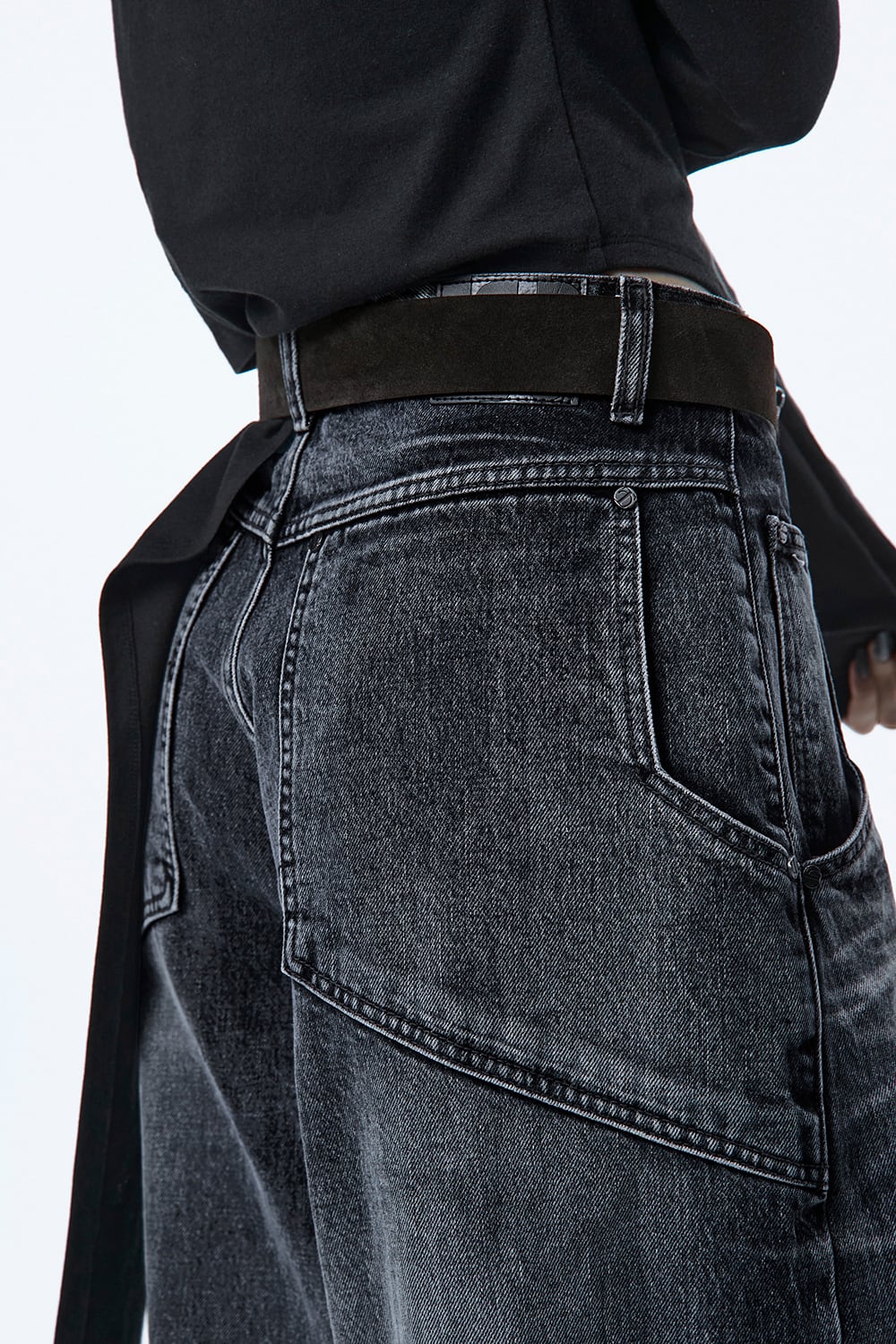 [TREEMINGBIRD] Handcrafted Faded Denim Pants [ Dark Gray ]